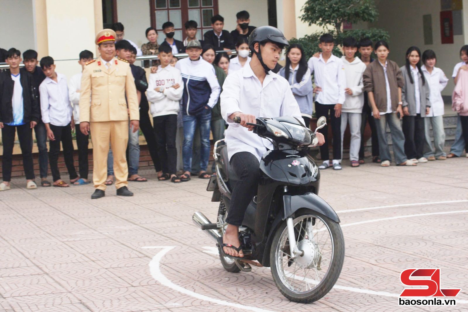 Học sinh Trường THPT Tông Lệnh trải nghiệm thực hành thi giấy phép lái xe.