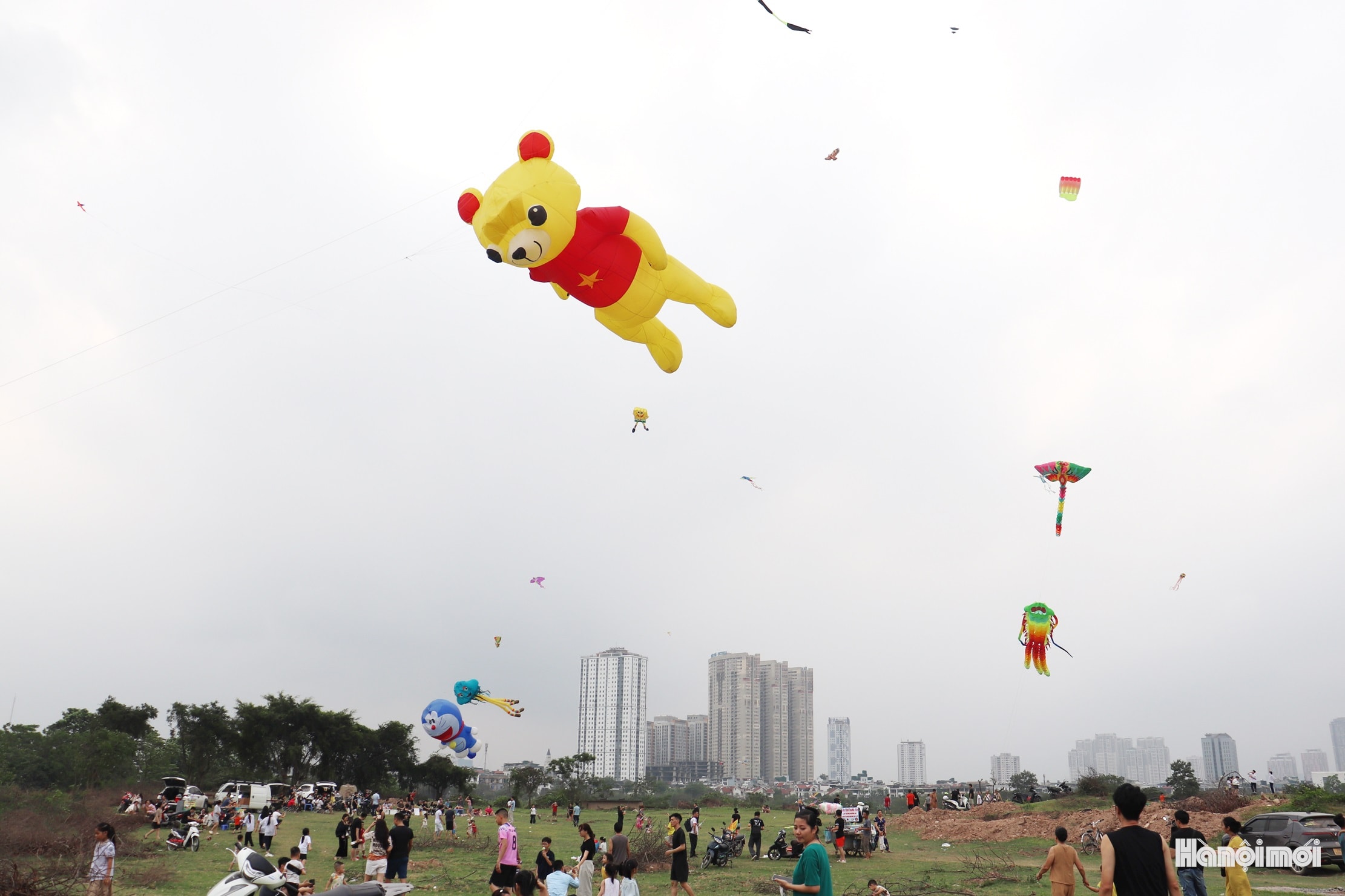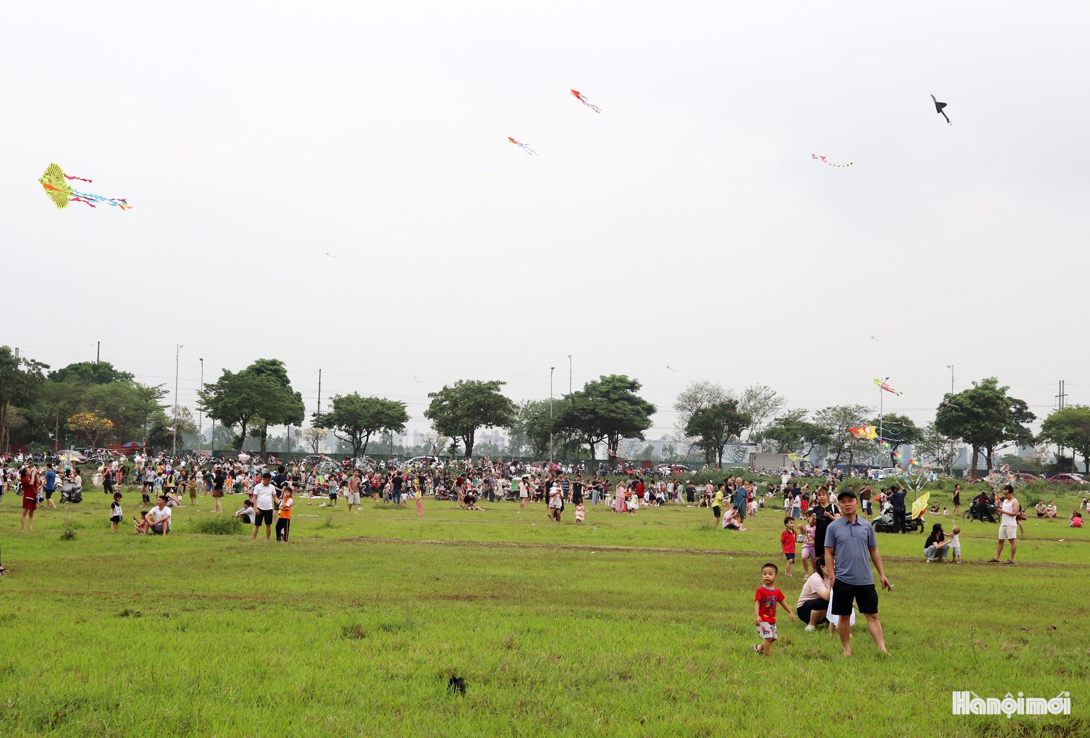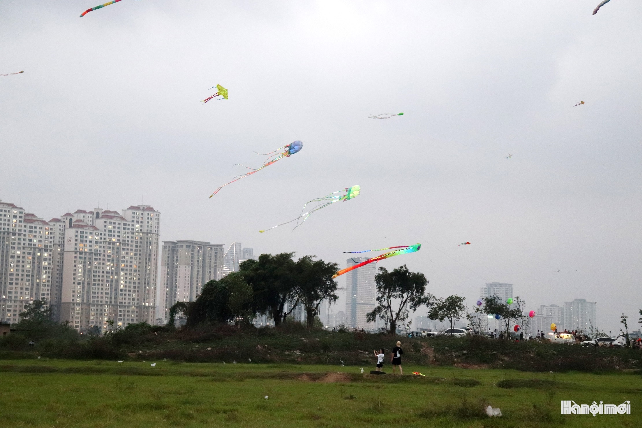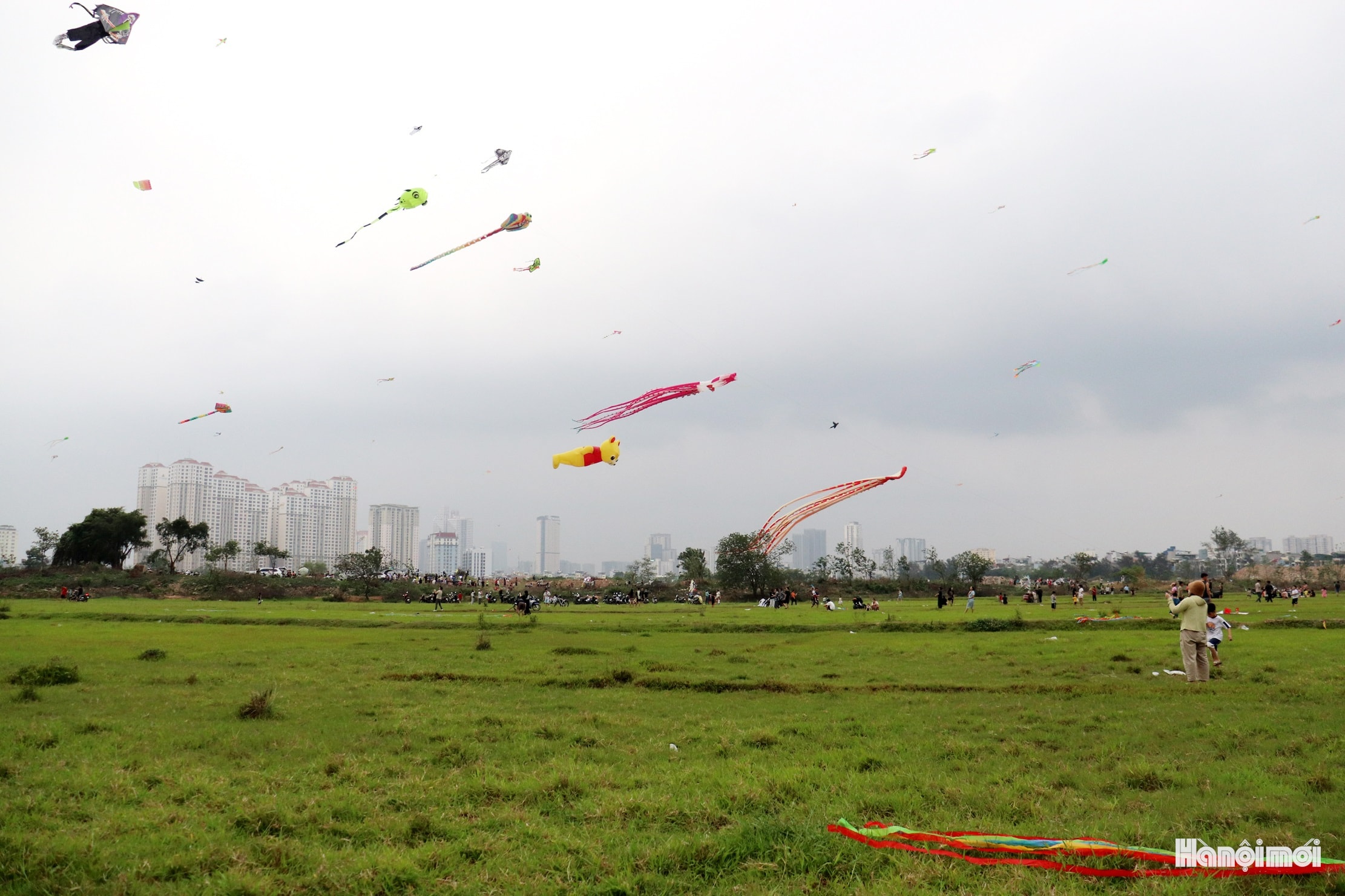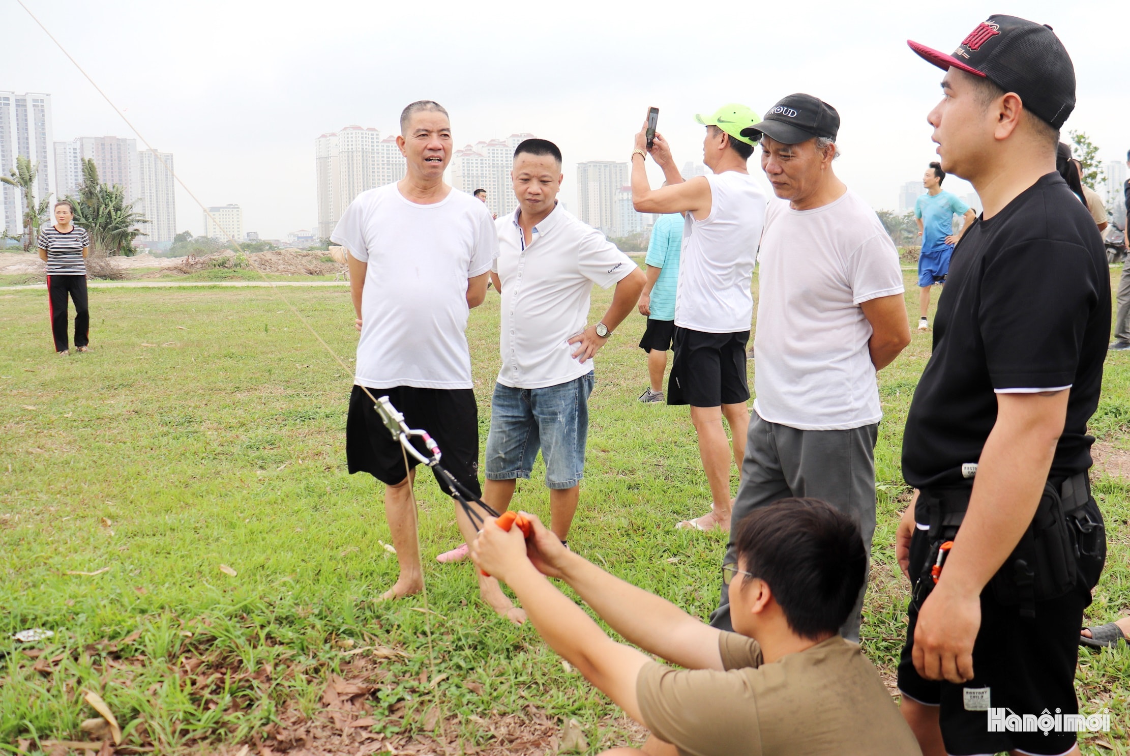 Rất đông người dân đổ về bãi đất trống tại phường Kiến Hưng để thả diều và xem thả diều mỗi buổi chiều. Ảnh: Tuấn Điệp