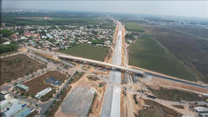 Một đoạn tại cao tốc Biên Hòa - Vũng Tàu, đoạn qua Đồng Nai đang thi công bê tông xi măng. Ảnh: Công Phong/TTXVN