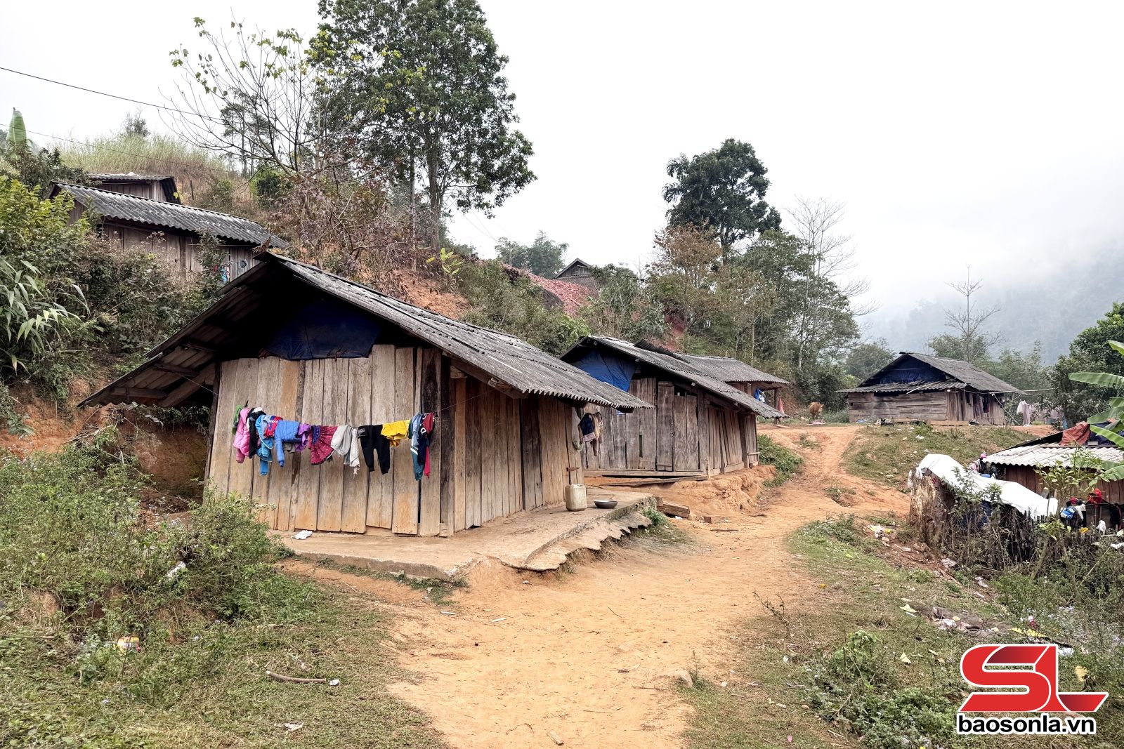 Cơn mưa phùn những ngày đầu tháng 2, tại xã biên giới Chiềng Sơn, khiến con đường đến điểm trường Suối Thín khó khăn hơn. Mất gần một giờ đồng hồ đánh vật với những con dốc dựng đứng và những khúc cua tay áo từ trung tâm xã, chúng tôi mới tới điểm trường. Sau màn sương mù mịt, hiện ra trước mắt chúng tôi là điểm trường Suối Thín được xây bê tông kiên cố, nhưng bên cạnh lại là những ngôi lán nhỏ bằng gỗ, tạm bợ nằm san sát nhau. Đây là nơi 86 trẻ đang ngày ngày kiên trì theo học con chữ dưới chân núi Pha Luông.