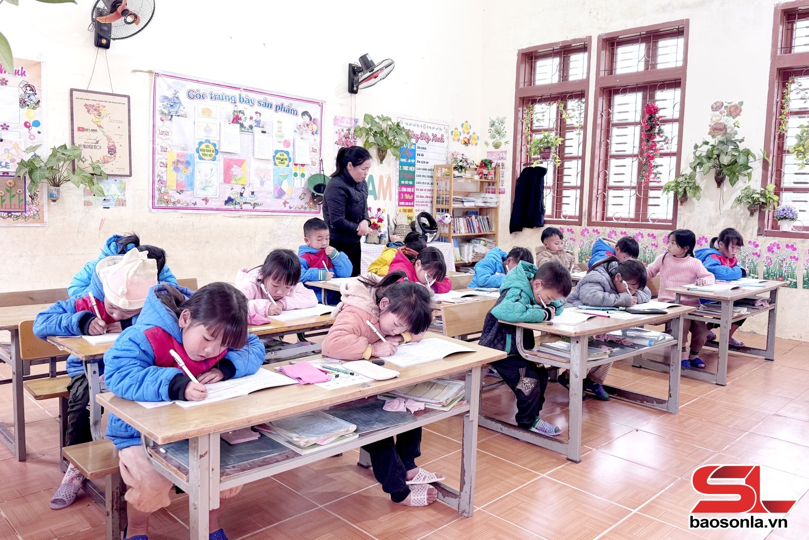Một tiết học tại điểm trường Suối Thín, Trường Tiểu học Chiềng Sơn.