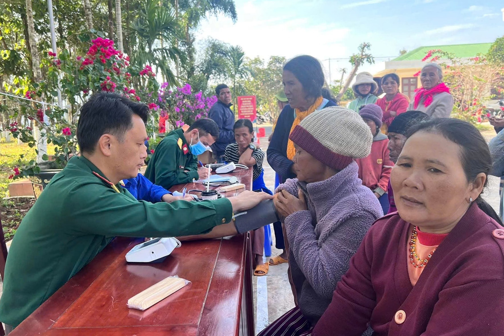 Cán bộ Bệnh xá Đoàn Kinh tế Quốc phòng Lâm Đồng tham gia đợt dân vận khám bệnh cho bà con vùng sâu