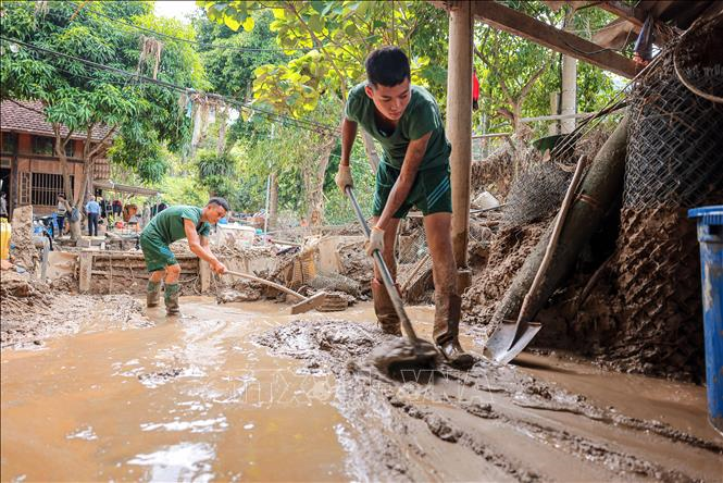 Lực lượng bộ đội luôn có mặt tại tuyến đầu phòng chống bão lũ, giúp dân sớm khắc phục, ổn định cuộc sống. Ảnh: TTXVN