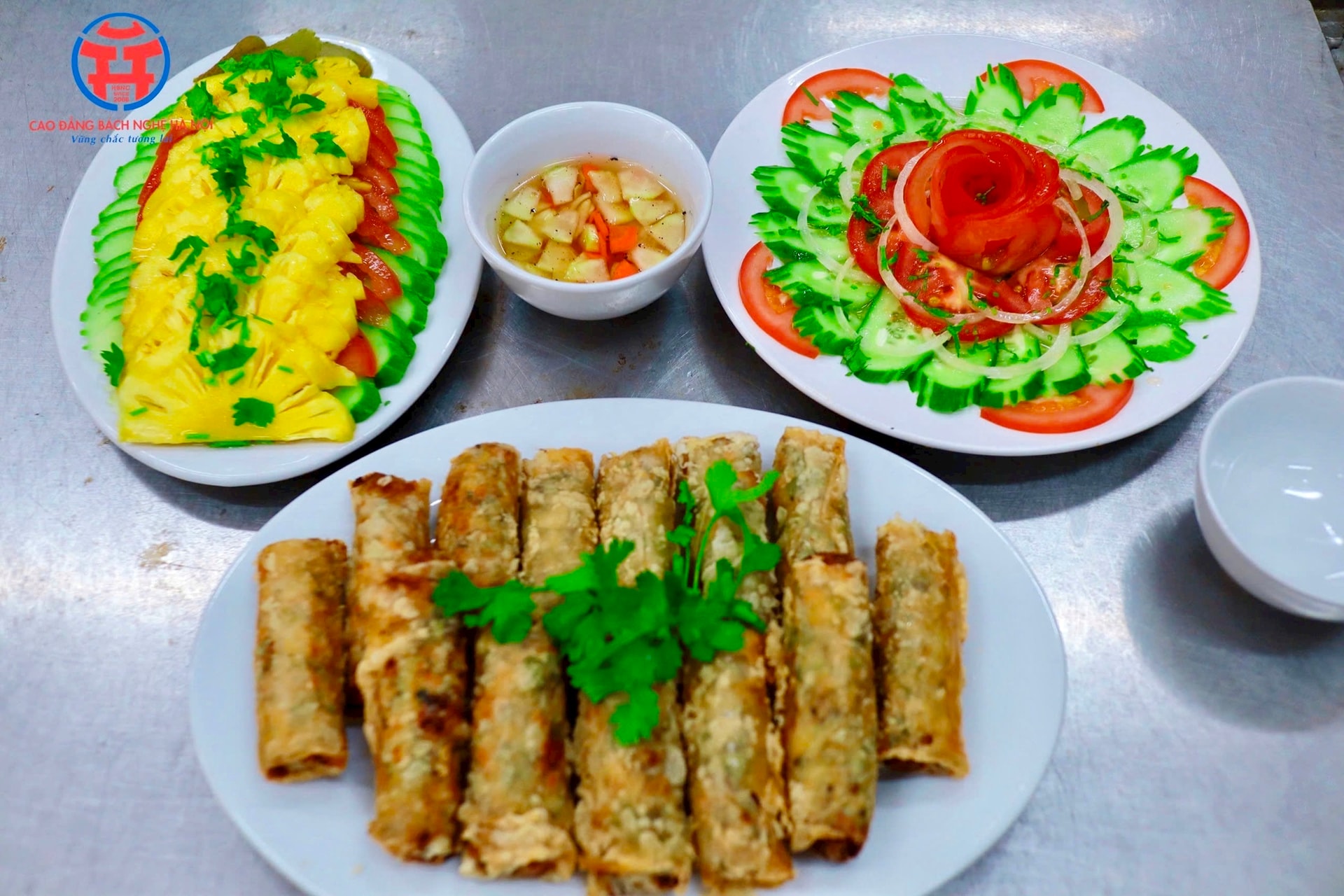 Những món ăn hấp dẫn – sản phẩm thực hành của học viên lớp kỹ thuật chế biến món ăn. Ảnh: BNHN