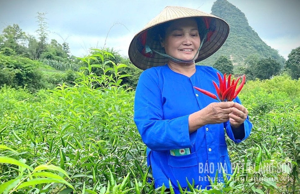 Hội viên nông dân xã Vạn Linh kiểm tra chất lượng ớt trước khi thu hoạch