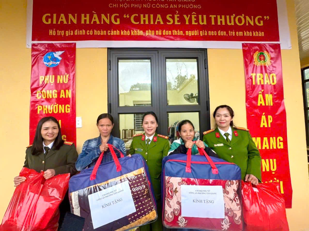 Ra mắt từ ngày 18/11/2025 tại tầng 2 trụ sở Công an phường Tân Giang (điểm Lê Chung), gian hàng “Chia sẻ yêu thương” đã nhanh chóng trở thành nơi kết nối lòng tốt, sẻ chia khó khăn cho người dân trên địa bàn. Được khởi xướng bởi Chi hội Phụ nữ Công an phường, mô hình hướng đến hỗ trợ những hộ gia đình còn khó khăn, phụ nữ đơn thân, người già neo đơn và trẻ em có hoàn cảnh đặc biệt - những đối tượng dễ tổn thương nhất trong xã hội.