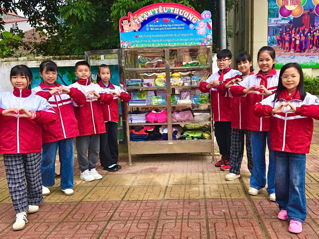 “Trạm yêu thương” tại Trường Tiểu học Hợp Giang tiếp thêm niềm vui đến trường cho các em nhỏ.