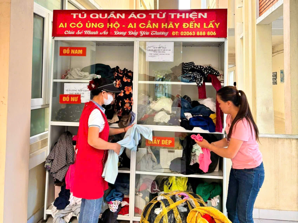 Giữa khuôn viên Bệnh viện Đa khoa tỉnh, tủ quần áo từ thiện từ lâu đã xuất hiện, là điểm dừng chân quen thuộc của bệnh nhân và người nhà. Với câu khẩu hiệu mộc mạc nhưng đầy yêu thương: “Ai có thì ủng hộ - ai cần thì đến lấy. Chia sẻ manh áo - đong đầy yêu thương”, tủ quần áo trở thành nơi gửi gắm tình người giữa những ngày đầy lo âu của bệnh tật.