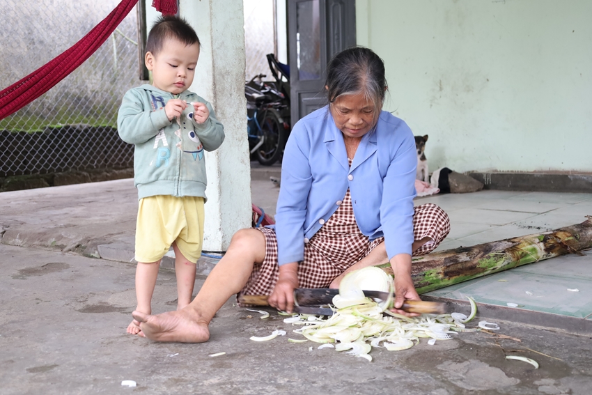 Ngồi trò chuyện, bà Bòn bảo, cuộc sống trước đây vốn khốn khó, nhất là từ ngày chồng bà qua đời. Nhưng nhờ sự quan tâm của chính quyền địa phương, nghĩa tình xóm làng, sự giúp đỡ của dòng họ, bà lại có động lực để vươn lên. 3 con bò giống hỗ trợ từ mô hình sinh kế giờ đã lớn, trở thành tài sản quý của gia đình. Ngoài những đồng cỏ gần nhà, người trong xóm vẫn gửi tặng thêm thân cây chuối, mớ cỏ cho bò ăn. Bà Bòn vừa chăn nuôi, vừa phụ con gái chăm cháu, cuộc sống tuy chưa thể gọi là khá giả nhưng đã vững vàng hơn trước. “Gia đình tôi đã thoát nghèo. Mừng nhất là luôn có bà con trong họ, xóm giềng động viên, làm điểm tựa”, bà Bòn nói, đôi mắt ánh lên niềm tin.