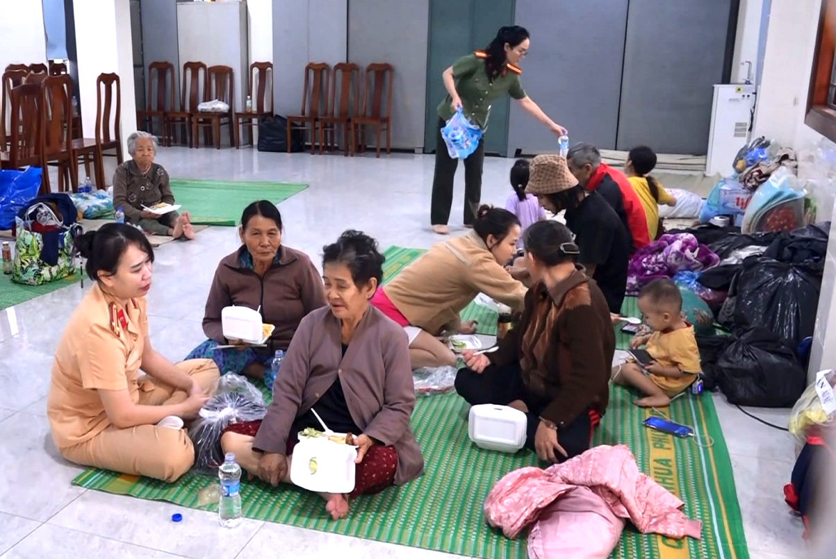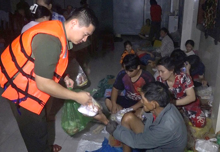 Không chỉ nỗ lực cứu dân đến nơi an toàn mà trong những ngày mưa lũ vừa qua, lực lượng Công an tỉnh Gia Lai còn quan tâm chăm lo chỗ nghỉ tạm, thực phẩm, nước uống cho đồng bào