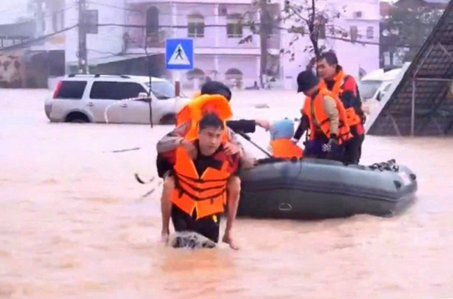 Tiếp tế nhu yếu phẩm thiết yếu cho người dân bị cô lập bởi nước lũ