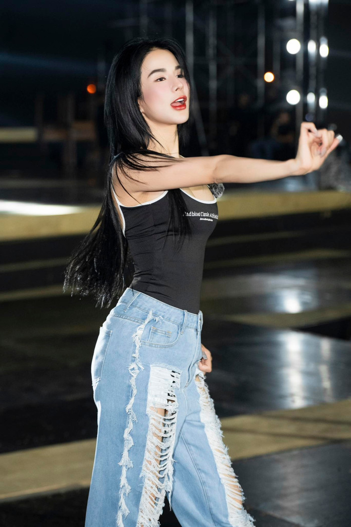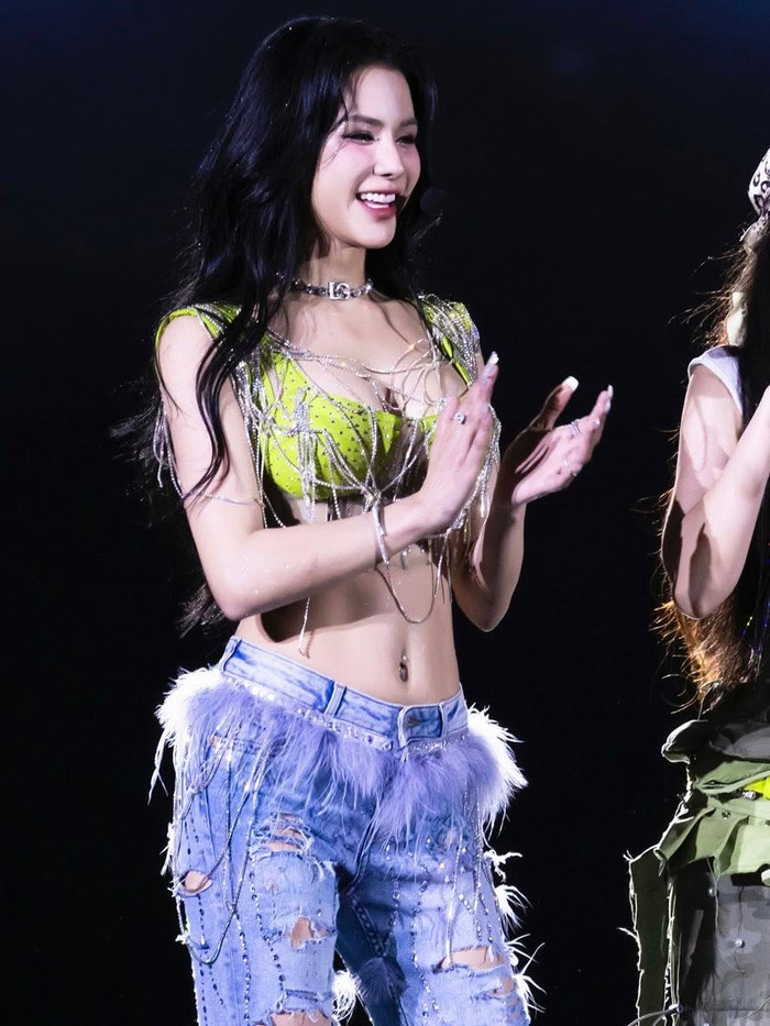 Diệp Lâm Anh thường xuyên lựa chọn chiếc áo ngắn cũn kết hợp quần jeans (Ảnh: FBNV).
