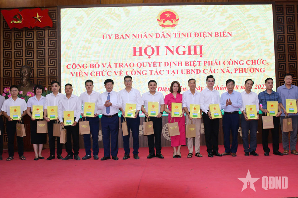 Tại hội nghị, Sở Nội vụ tỉnh Điện Biên đã công bố Quyết định số 2446/QĐ-UBND ngày 17-10-2025 của UBND tỉnh Điện Biên về việc phê duyệt danh sách công chức, viên chức biệt phái về công tác tại UBND các xã, phường. Theo quyết định, UBND tỉnh Điện Biên biệt phái 52 công chức, viên chức đang công tác tại các cơ quan chuyên môn, đơn vị sự nghiệp công lập thuộc UBND tỉnh làm việc tại các xã, phường trong thời gian 6 tháng, kể từ ngày 20-10-2025.