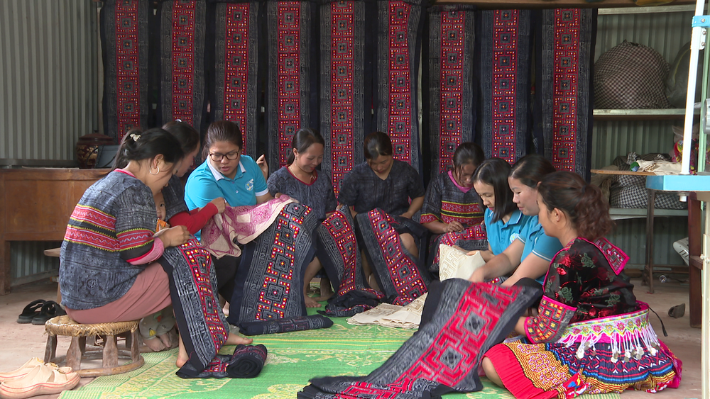 Nhận thức rõ điều đó, chính cộng đồng đã chủ động tìm cách thích ứng. Tại bản Púng Pá Kha, xã Nà Bủng, mô hình tổ, nhóm thêu may trang phục truyền thống với khoảng 40 thành viên được thành lập, chủ yếu là phụ nữ tranh thủ thời gian nông nhàn để thêu váy, áo, tạp dề phục vụ thị trường. Chị Mùa Thị Mỷ, chủ nhiệm mô hình, cho biết khi tham gia tổ nhóm, chị em được hỗ trợ máy may, hướng dẫn kỹ thuật nên sản phẩm làm ra nhanh và đồng đều hơn, lại có đầu ra ổn định nên yên tâm gắn bó với nghề.