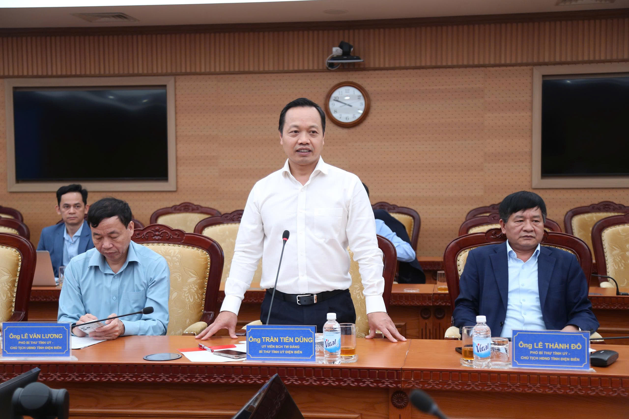 Phát biểu tại buổi làm việc, Bí thư Tỉnh ủy Trần Tiến Dũng đề nghị Bộ Tài chính quan tâm, tham mưu Chính phủ về công tác điều chỉnh qui hoạch điện gió; tháo gỡ vướng mắc, thống nhất về chủ trương đầu tư Dự án cao tốc Sơn La - Điện Biên - Cửa khẩu Tây Trang, tránh việc phải làm lại thủ tục, hồ sơ gây mất thời gian, ảnh hưởng đến tiến độ triển khai dự án. Đặc biệt, hiện tỉnh Điện Biên còn các thôn, bản chưa có điện lưới quốc gia, ảnh hưởng rất lớn đến kinh tế - xã hội, đời sống sinh hoạt của nhân dân, cần sự quan tâm, khẩn trương đầu tư của các cấp, ngành.
