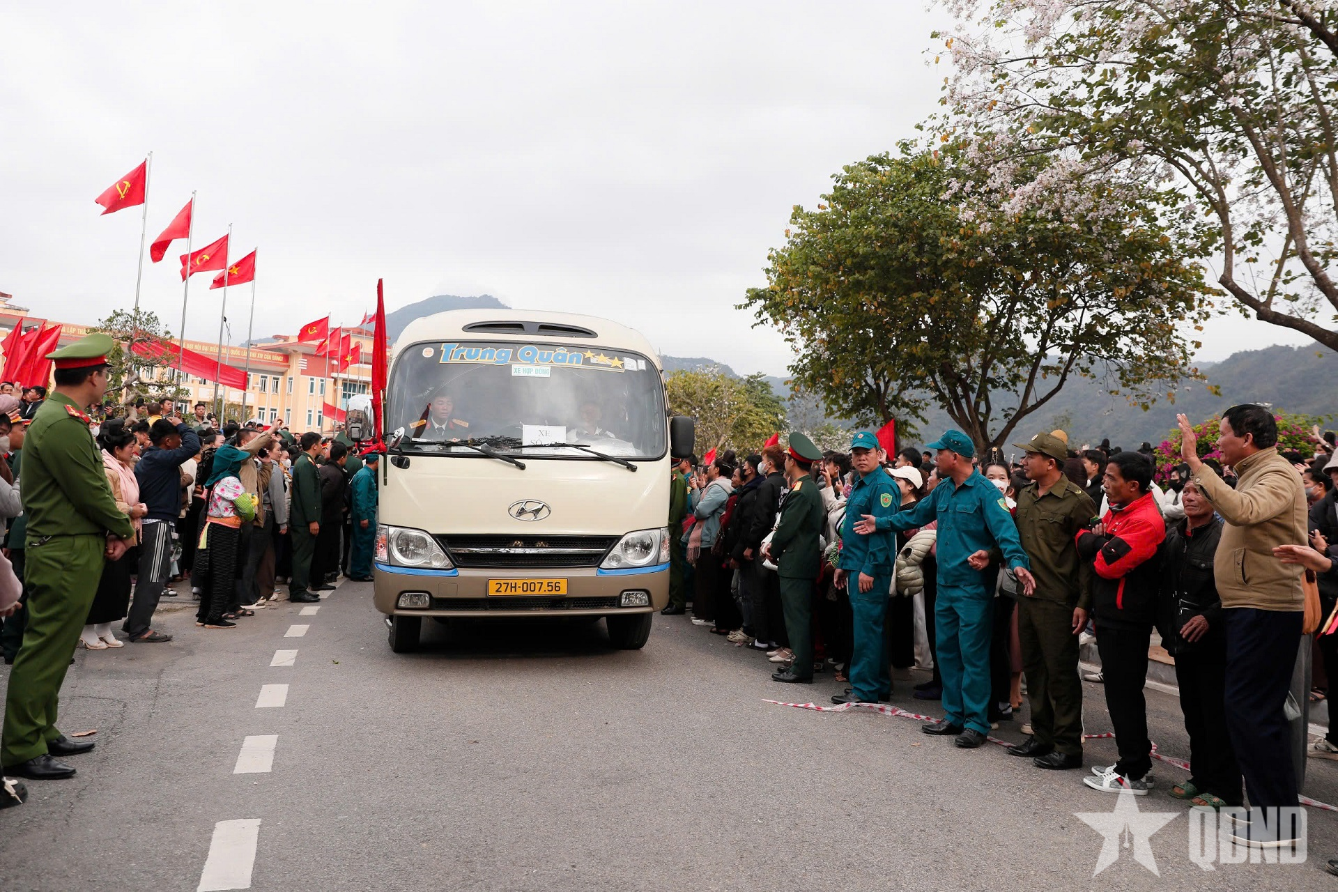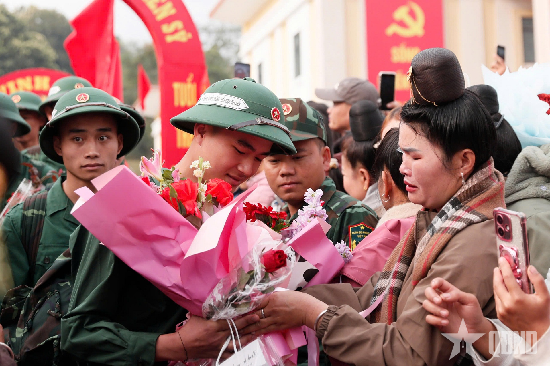Đông đảo người dân địa phương tiễn thanh niên lên đường nhập ngũ.