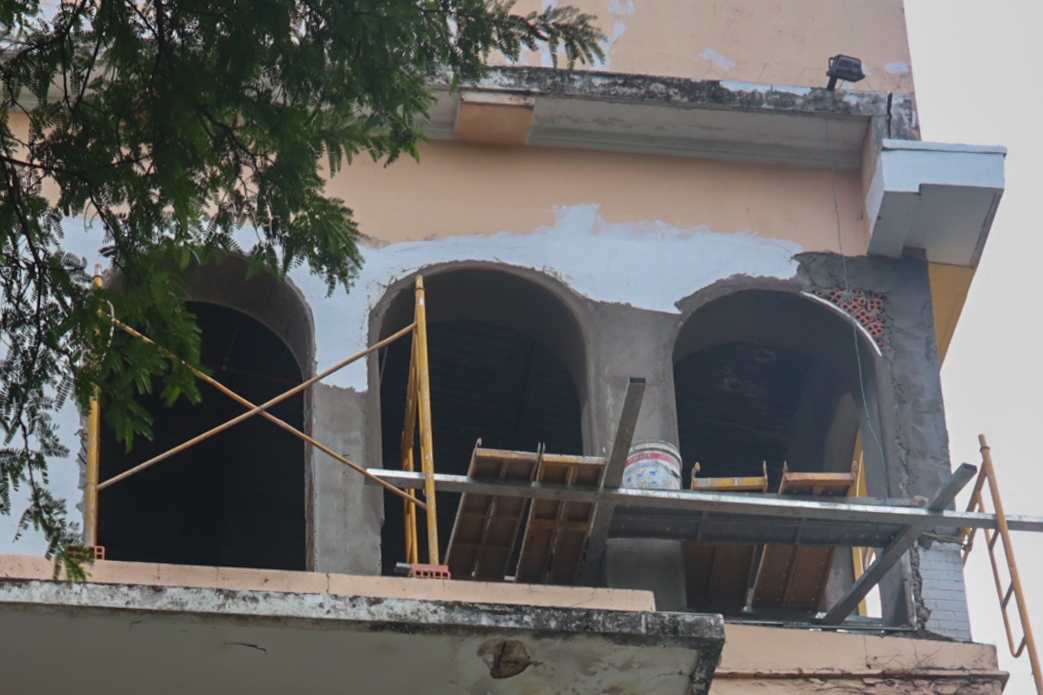 Trưa 23/12, ghi nhận tại tòa nhà số 125 Hai Bà Trưng (phường Sài Gòn, TP.HCM), lầu 2 của tòa nhà đang được thi công, sơn sửa. Một số ô cửa sổ ở đây đã được trát lại, định hình theo dạng vòm, có khác biệt với phần còn lại của công trình.