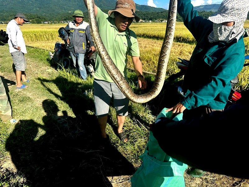 Cá thể trăn gấm do nhân dân xã Thanh An phát hiện đã được thả về môi trường tự nhiên. Ảnh: Tuyết Anh