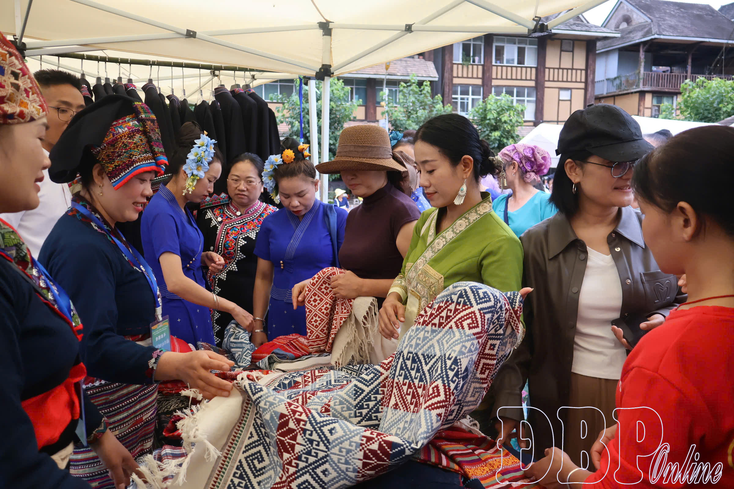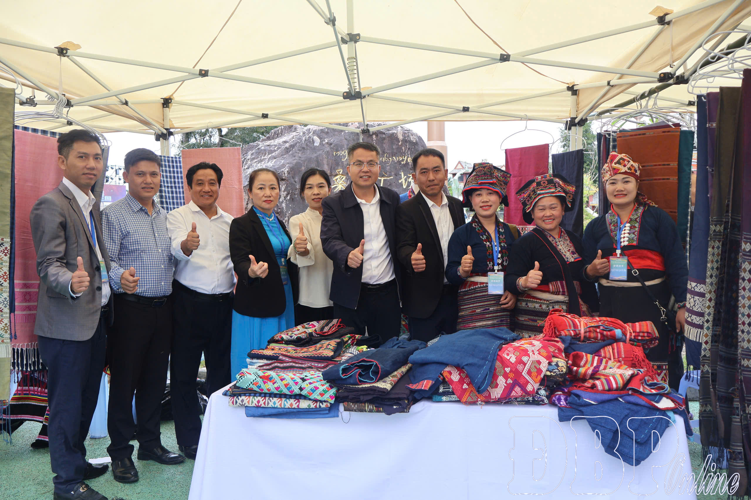 Sản phẩm thổ cẩm Lào của Điện Biên thu hút sự quan tâm của đông đảo người dân và du khách tham dự sự kiện.