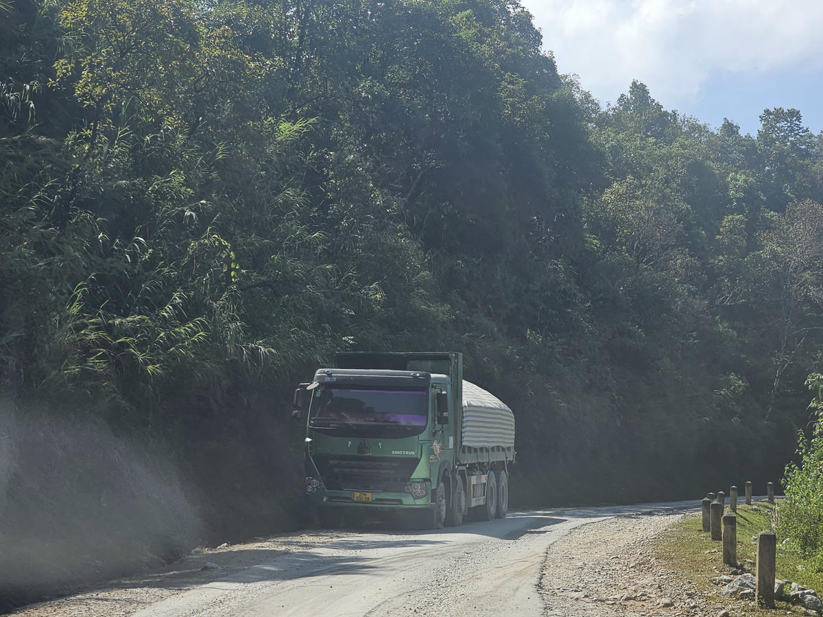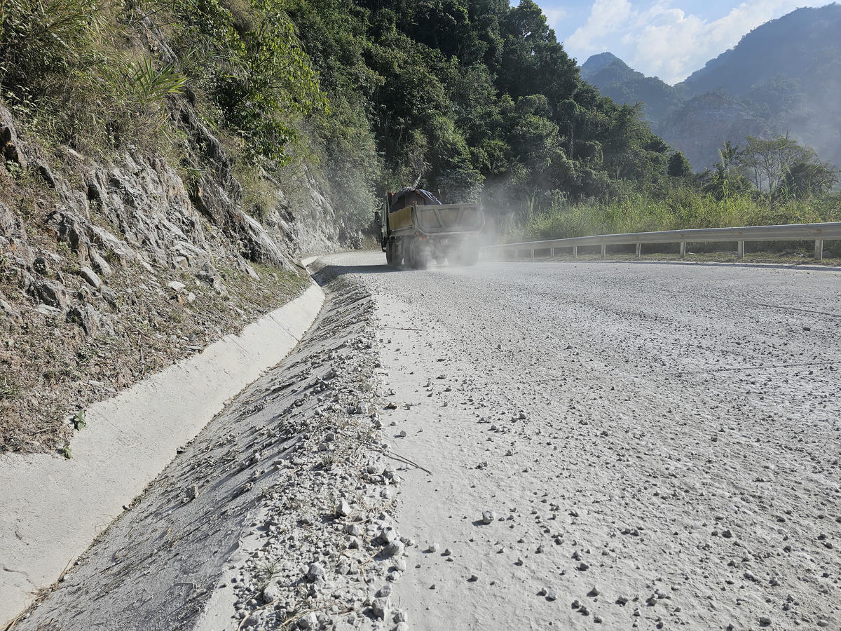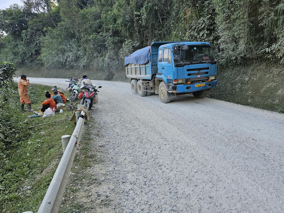 Theo ghi nhận của phóng viên, trên Quốc lộ 279 từ trung tâm tỉnh Điện Biên đi cửa khẩu Tây Trang cũng nườm nượp xe trọng tải lớn chở vật liệu tung hoành trên đường. Đáng chú ý, tuyến đường từ khu vực Nhà máy xi măng Điện Biên đi cửa khẩu Tây Trang có nhiều đoạn đường có dấu hiệu xuống cấp, hư hỏng.
