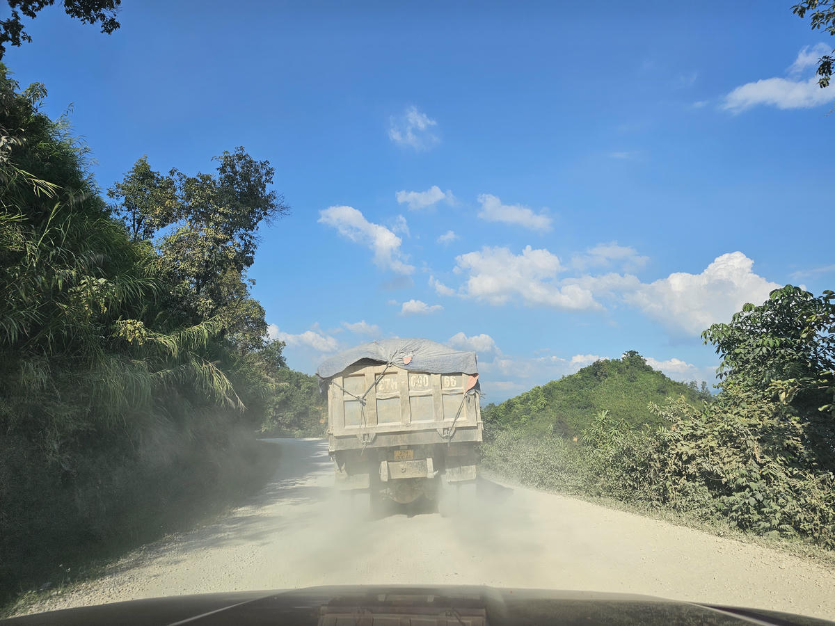 Xe trọng tải lớn ngược xuôi ở một số xã, phường ở trung tâm tỉnh Điện Biên. Ảnh: T. H.