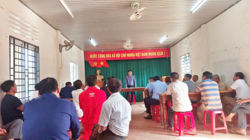 Cán bộ Ban Quản lý dự án Tổng công ty Phát điện 2 (EVNGENCO2) giải thích, kiểm tra hồ sơ, hoàn tất thủ tục cho các hộ dân liên quan đến Dự án Điện gió Hướng Phùng 1.