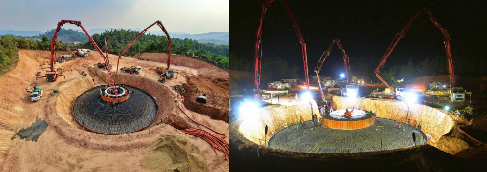 Trên công trường, các mũi thi công đồng loạt triển khai, những cần bơm bê tông vươn cao trong đêm, xe trộn nối đuôi nhau, công nhân làm việc bất kể ngày đêm. Tất cả cùng chung một mục tiêu: đẩy nhanh tiến độ trước khi mùa mưa rừng sắp đến – thời điểm có thể khiến mọi nỗ lực bị chậm lại bởi đất trơn, đường lầy và thời tiết khắc nghiệt.