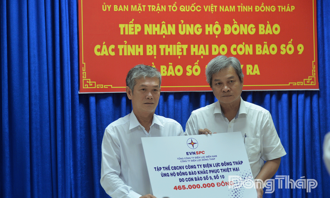 Phó Giám đốc Công ty Điện lực Đồng Tháp Lê Hữu Đức chia sẻ: Với truyền thống đạo lý của dân tộc và tinh thần “Tương thân tương ái”, “Lá lành đùm lá rách", trước những thiệt hại nặng nề do bão số 9, số 10 gây ra, Điện lực Đồng Tháp đã phát động, kêu gọi toàn thể lãnh đạo, cán bộ, nhân viên trong toàn ngành hưởng ứng, đóng góp ủng hộ Nhân dân bị thiệt hại. Việc trao số tiền hỗ trợ nhằm góp phần cùng chính quyền và các tổ chức xã hội kịp thời giúp người dân vùng bị ảnh hưởng khắc phục hậu quả thiên tai, ổn định đời sống, khôi phục sản xuất sau bão.