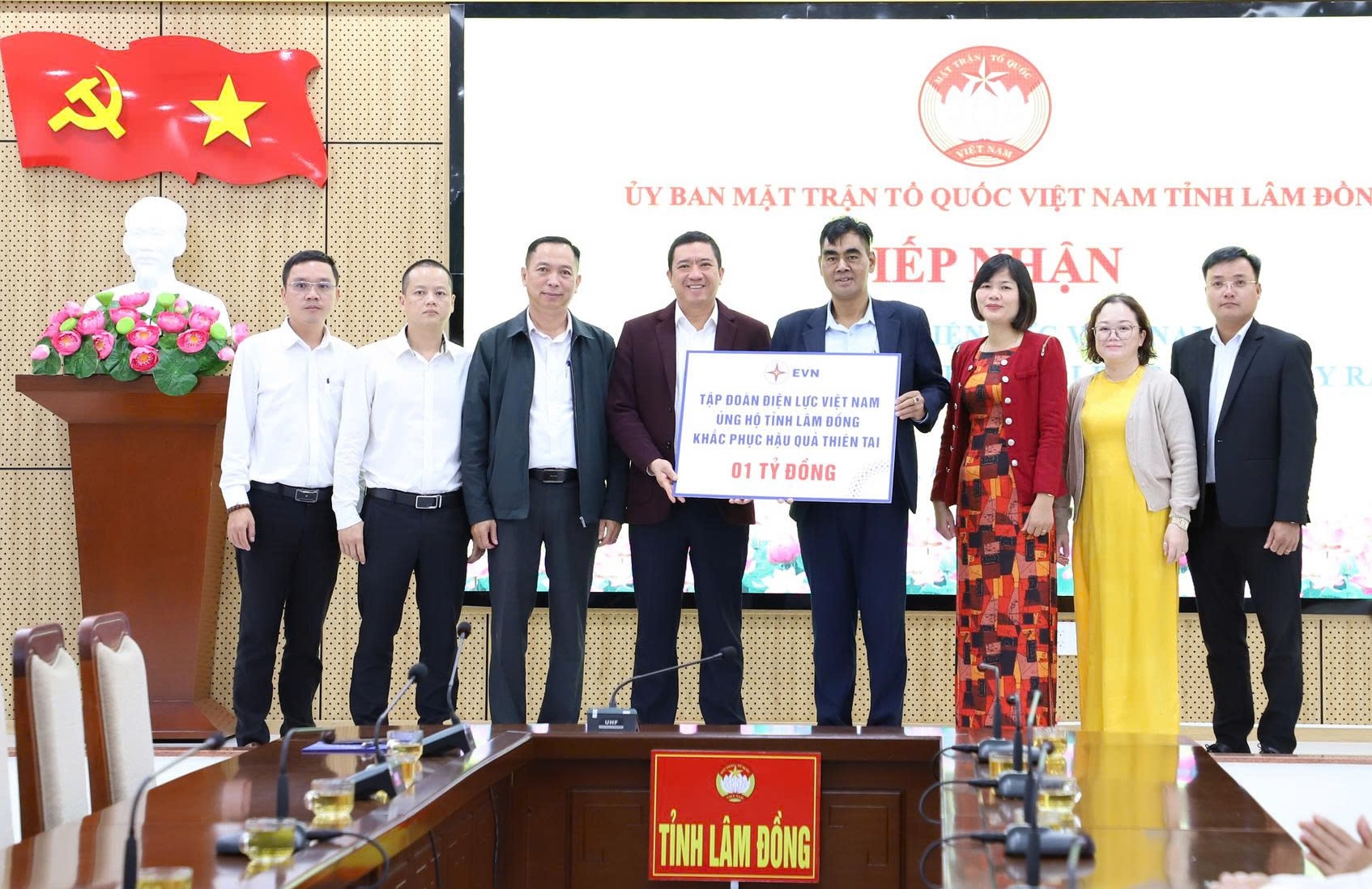 Ông Phan Sỹ Duy, Giám đốc Công ty Điện lực Lâm Đồng cho biết, vừa thay mặt Tập đoàn Điện lực Việt Nam (EVN), trao 1 tỷ đồng thông qua Ủy ban MTTQ Việt Nam tỉnh Lâm Đồng hỗ trợ người dân Lâm Đồng bị thiệt hại do mưa lũ.
