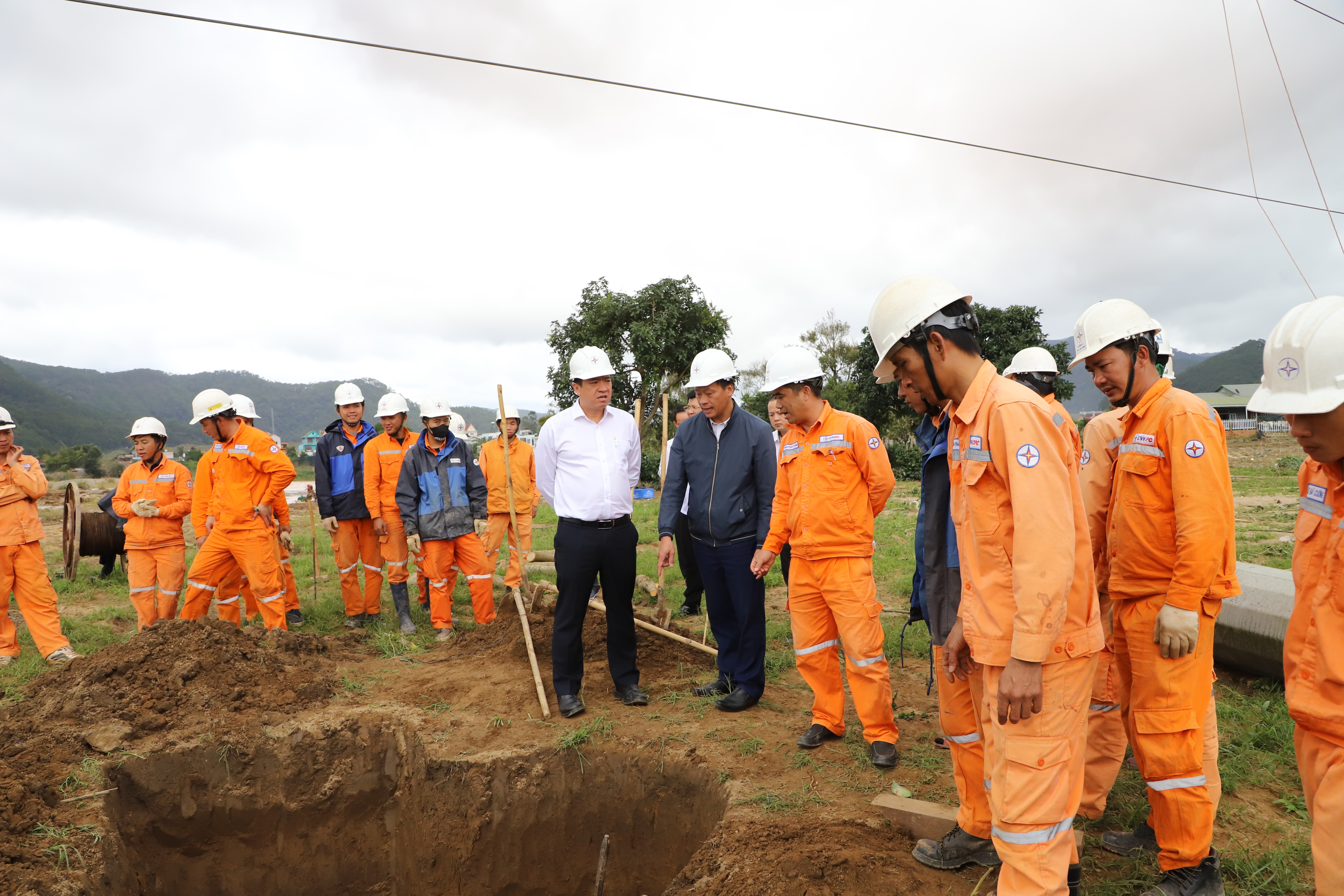 Lãnh đạo Công ty Điện lực Lâm Đồng kiểm tra công tác khắc phục mưa lũ gây ra tại thôn Đường Mới, xã D'ran, tỉnh Lâm Đồng