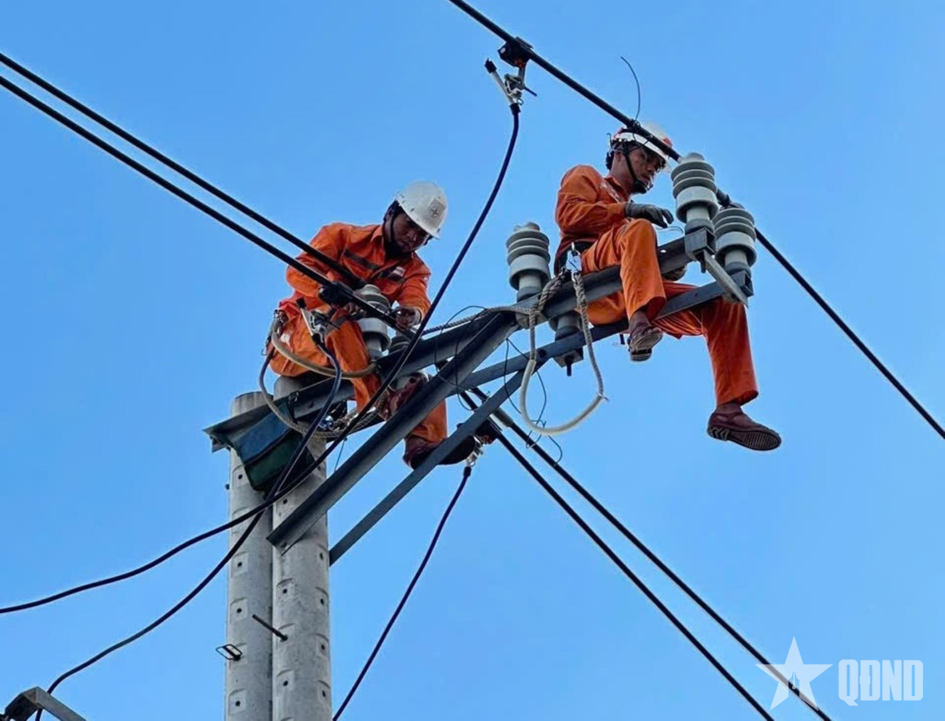 Cán bộ, công nhân ngành điện miền Trung nỗ lực khắc phục sự cố, khôi phục lưới điện sau bão số 13.