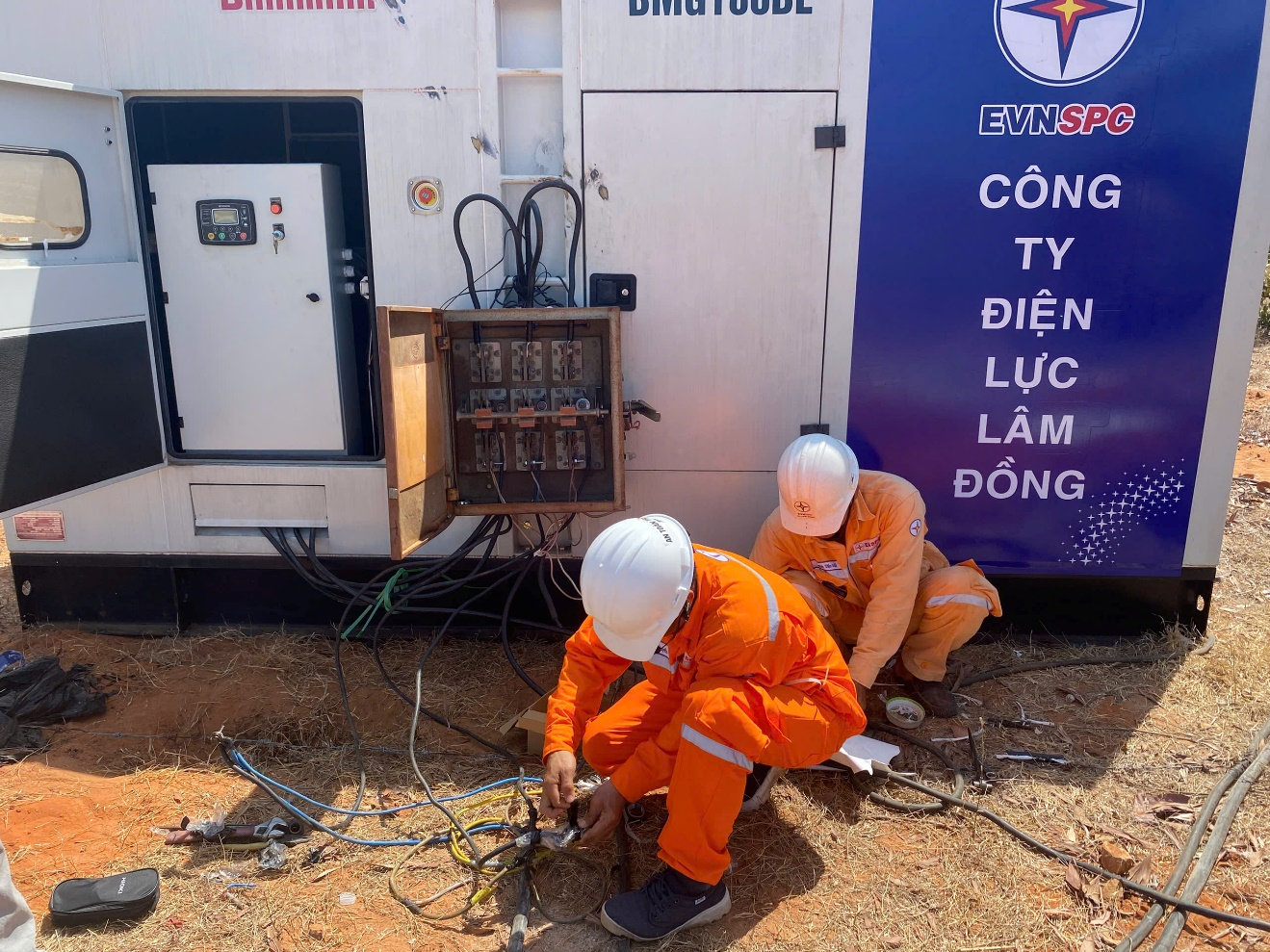 Do khu vực tổ chức lễ khởi công hiện chưa được đầu tư đồng bộ lưới điện quốc gia, đơn vị đã chủ động triển khai phương án cấp điện bằng nguồn máy phát với cấu hình 01 máy phát chính 3 pha 160 kVA và 01 máy phát dự phòng 200 kVA. Giải pháp này không chỉ đảm bảo nguồn điện liên tục mà còn nâng cao độ tin cậy, đáp ứng yêu cầu khắt khe của một sự kiện quy mô lớn, có tính chất quốc gia.