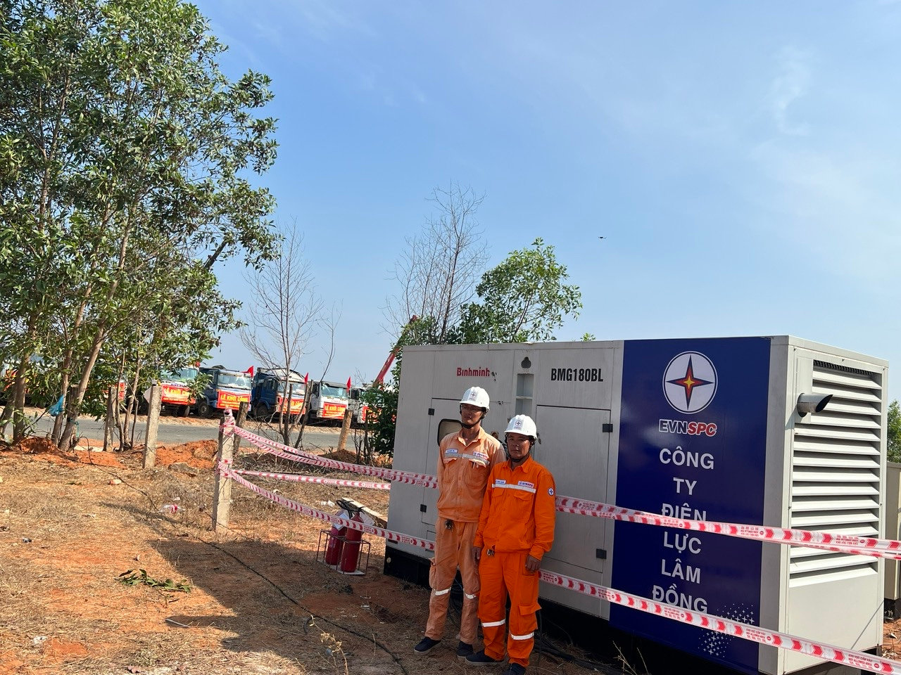 Nhân viên Điện lực Phan Thiết trực vận hành máy phát điện phục vụ Lễ khởi công Dự án Cảng hàng không Phan Thiết