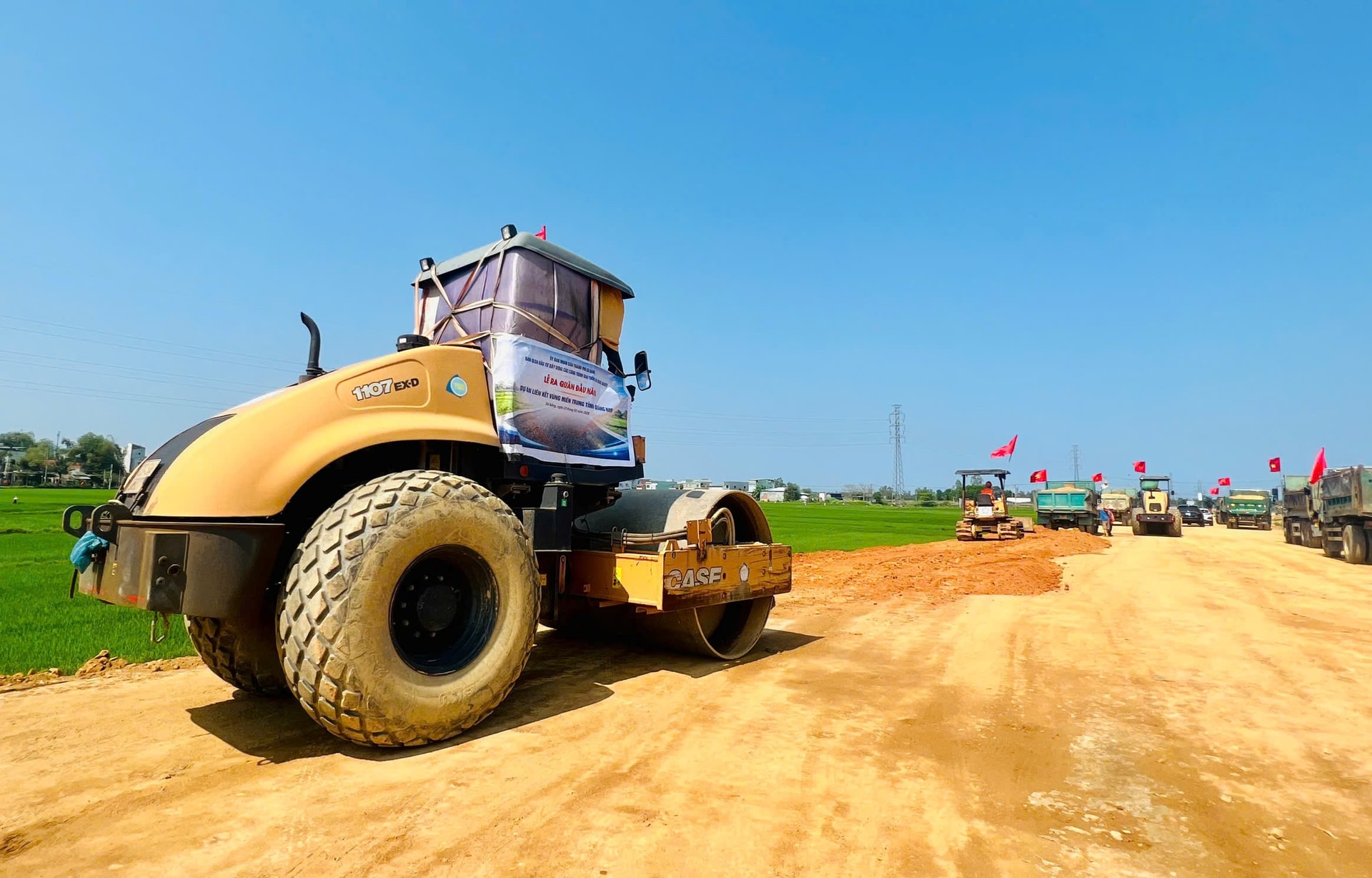 Nhà thầu ra quân đầu Xuân Bính Ngọ trên công trường dự án Liên kết vùng miền Trung. Ảnh: CÔNG TÚ