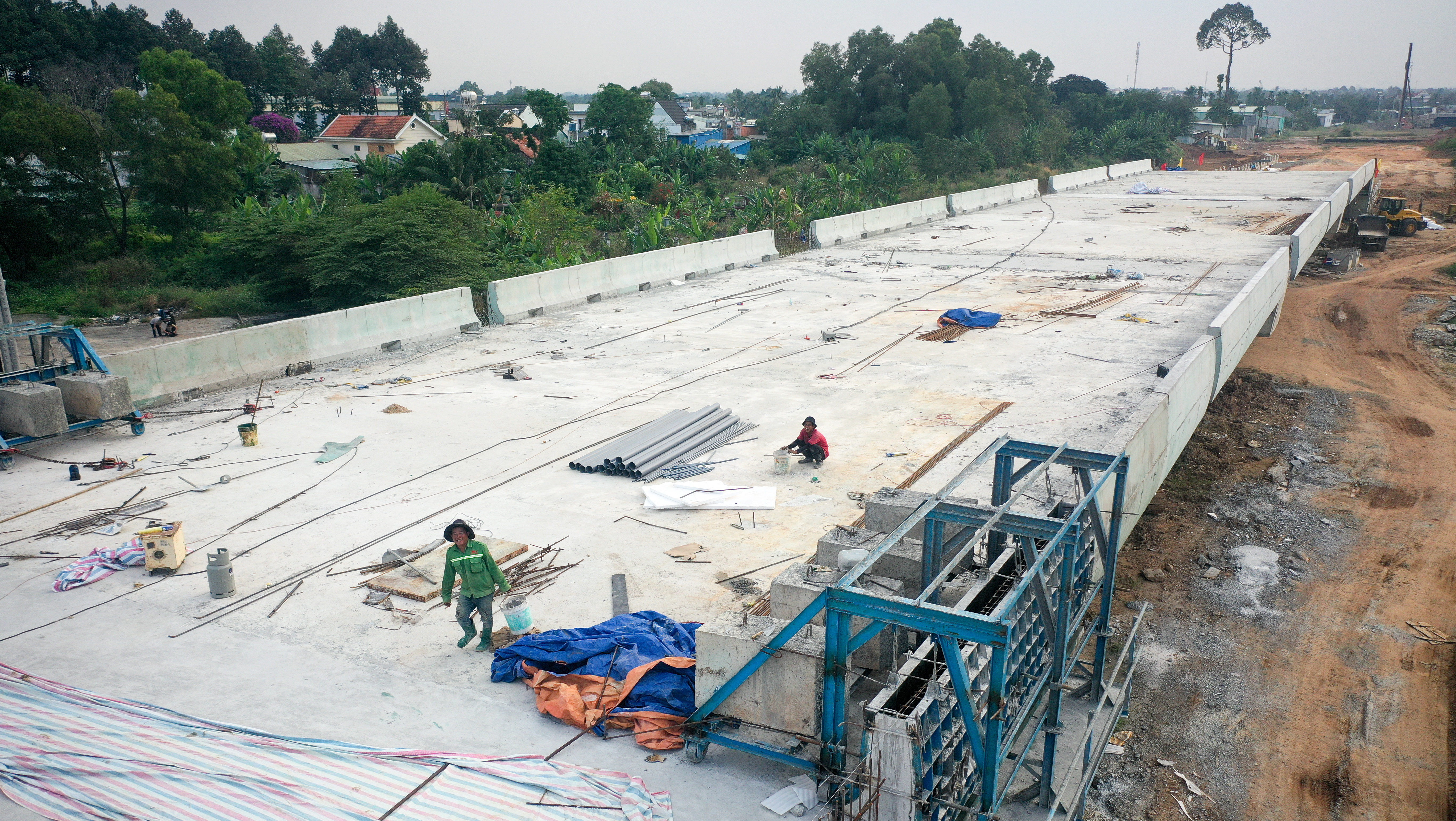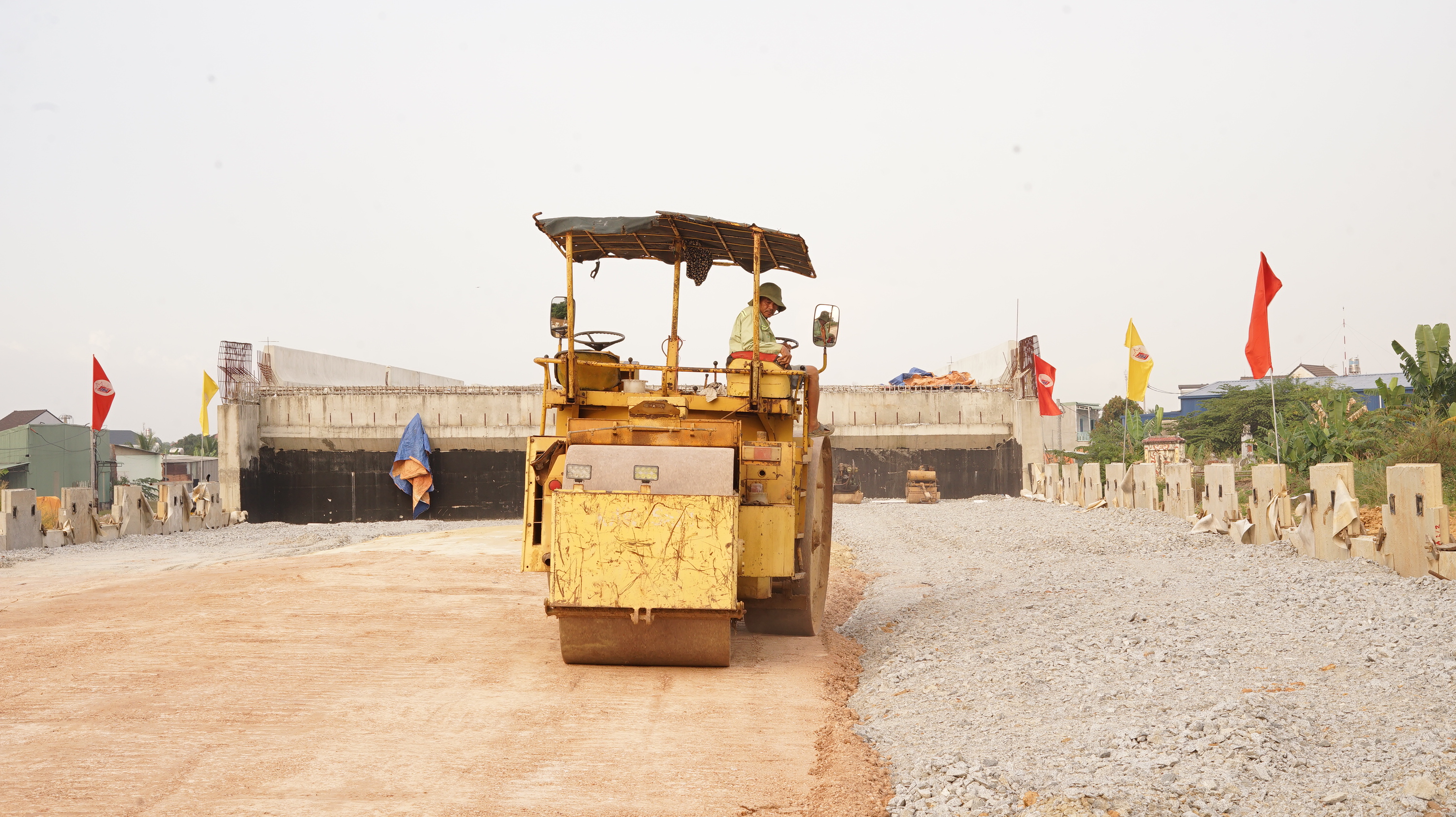 Theo đơn vị thi công, hạng mục thi công đường dẫn vào cầu Bình Gởi cũng đang được khẩn trương thi công. Các gói thầu chia "3 ca, 4 kíp" để đẩy nhanh tiến độ.