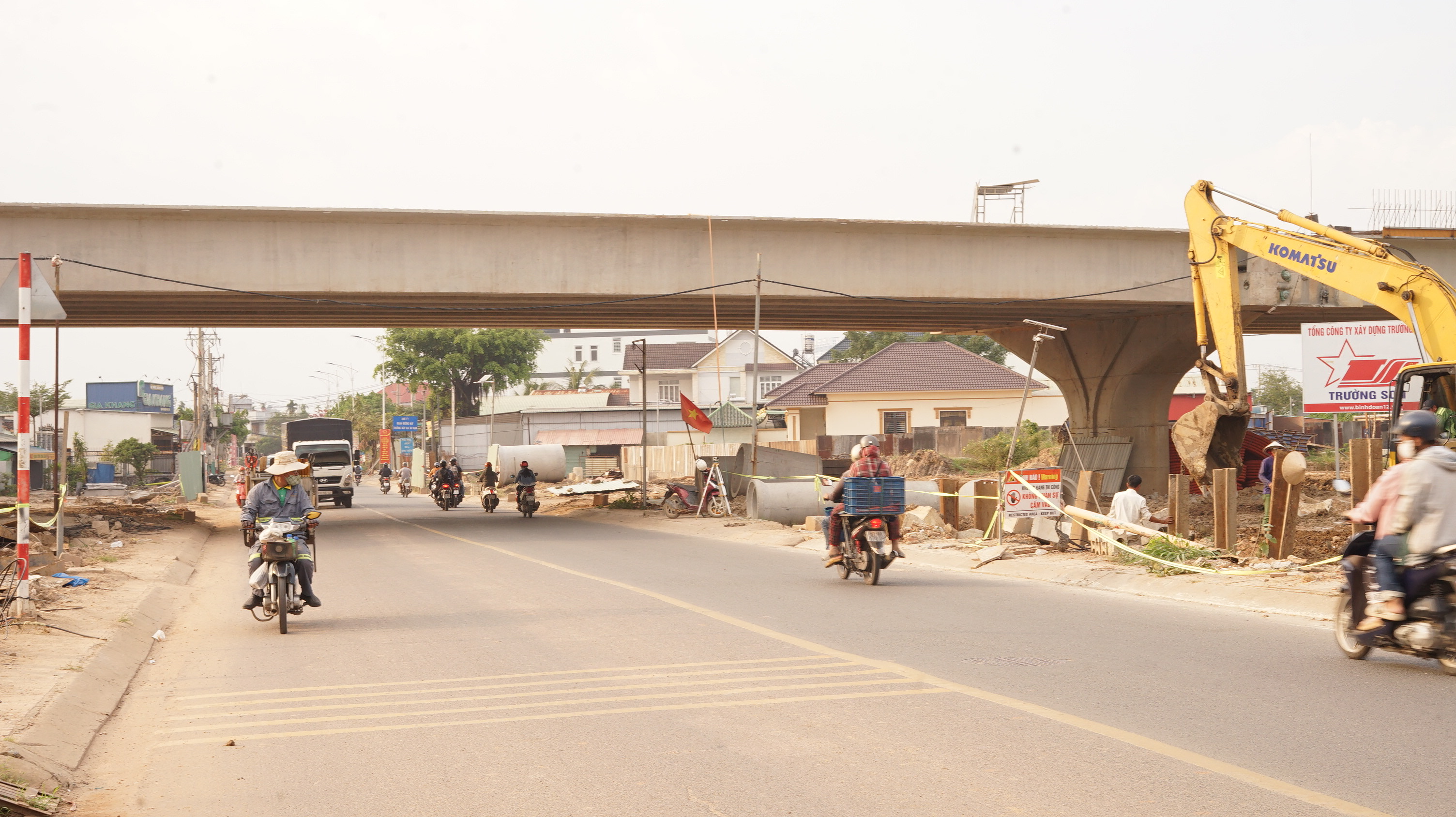 Đơn vị thi công vừa hợp long đoạn cầu vượt qua đường Cách mạng Tháng Tám để kết nối đường dẫn tới cầu Bình Gởi vượt sông Sài Gòn.