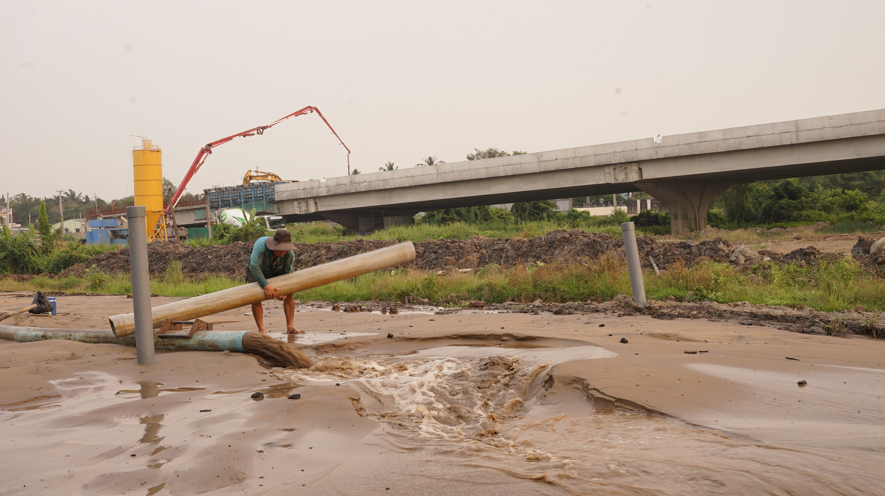 Theo các kỹ sư và công nhân thi công cho biết, nhờ có nguồn cát cung cấp từ các tỉnh miền Tây Nam bộ nên đã “giải được cơn khát” vật liệu để phục vụ thi công.