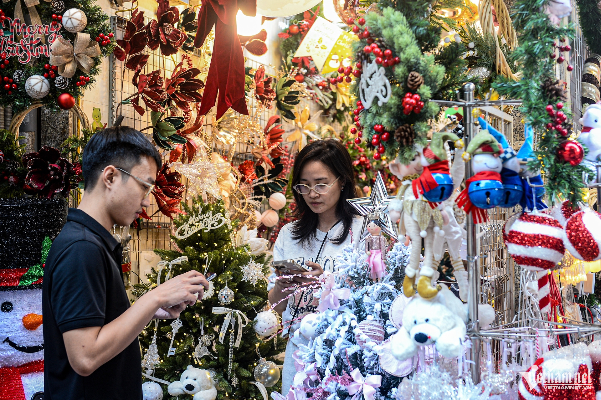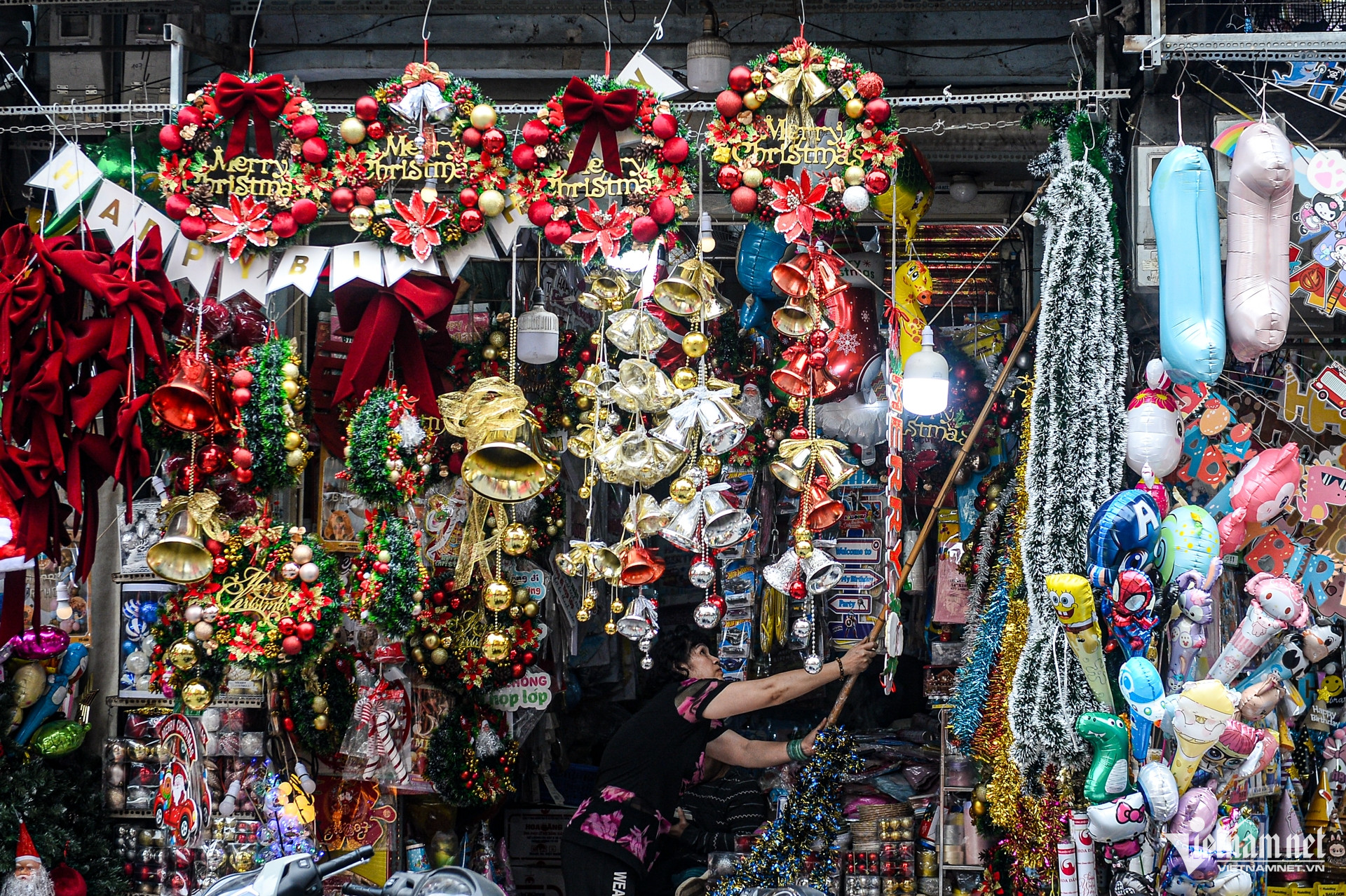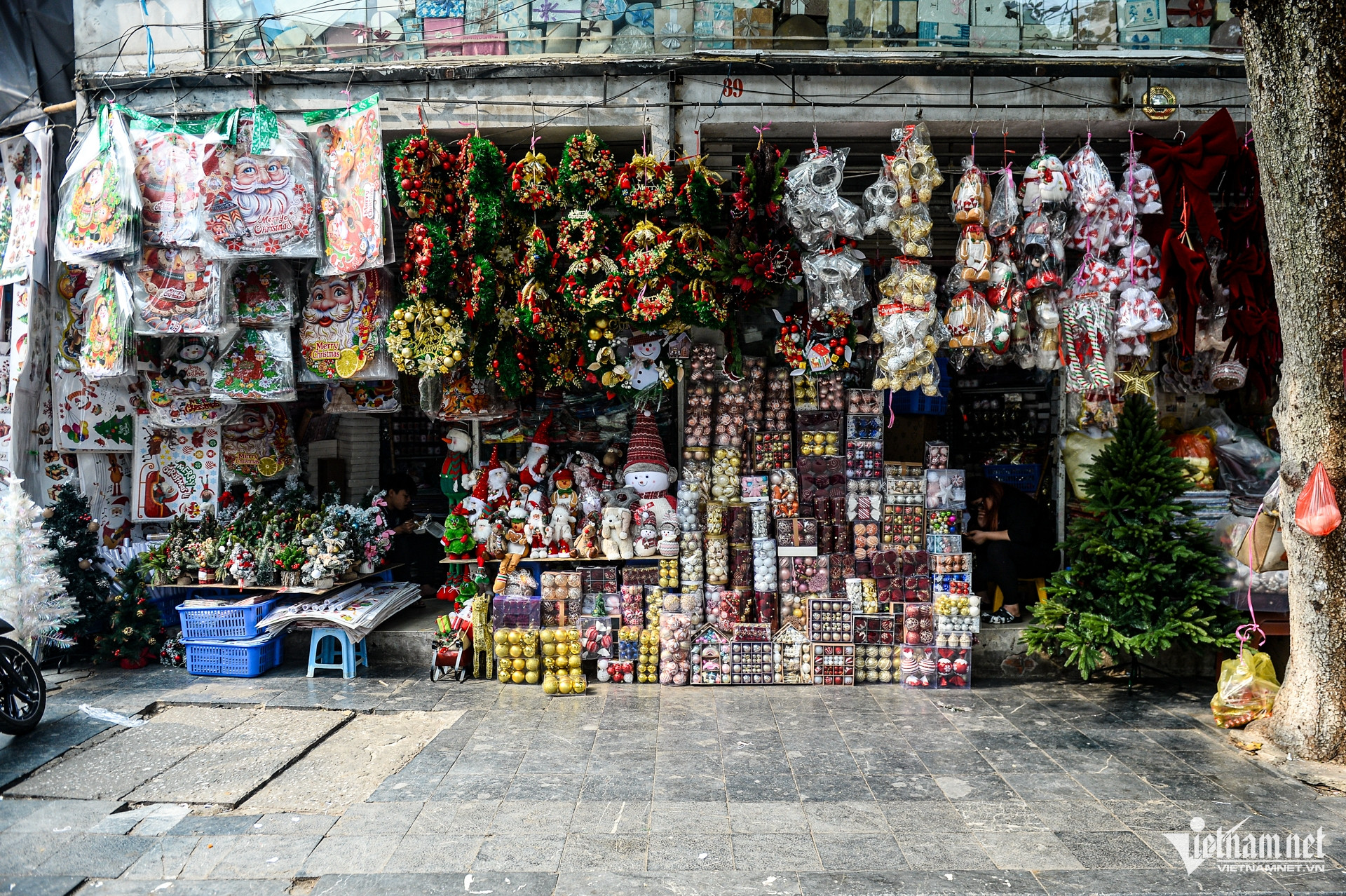 Thay vì bày tràn ra vỉa hè, các sản phẩm Giáng sinh năm nay được sắp xếp gọn gàng hơn, thậm chí đưa lên cả tầng 2, nơi người đi đường khó quan sát hơn.