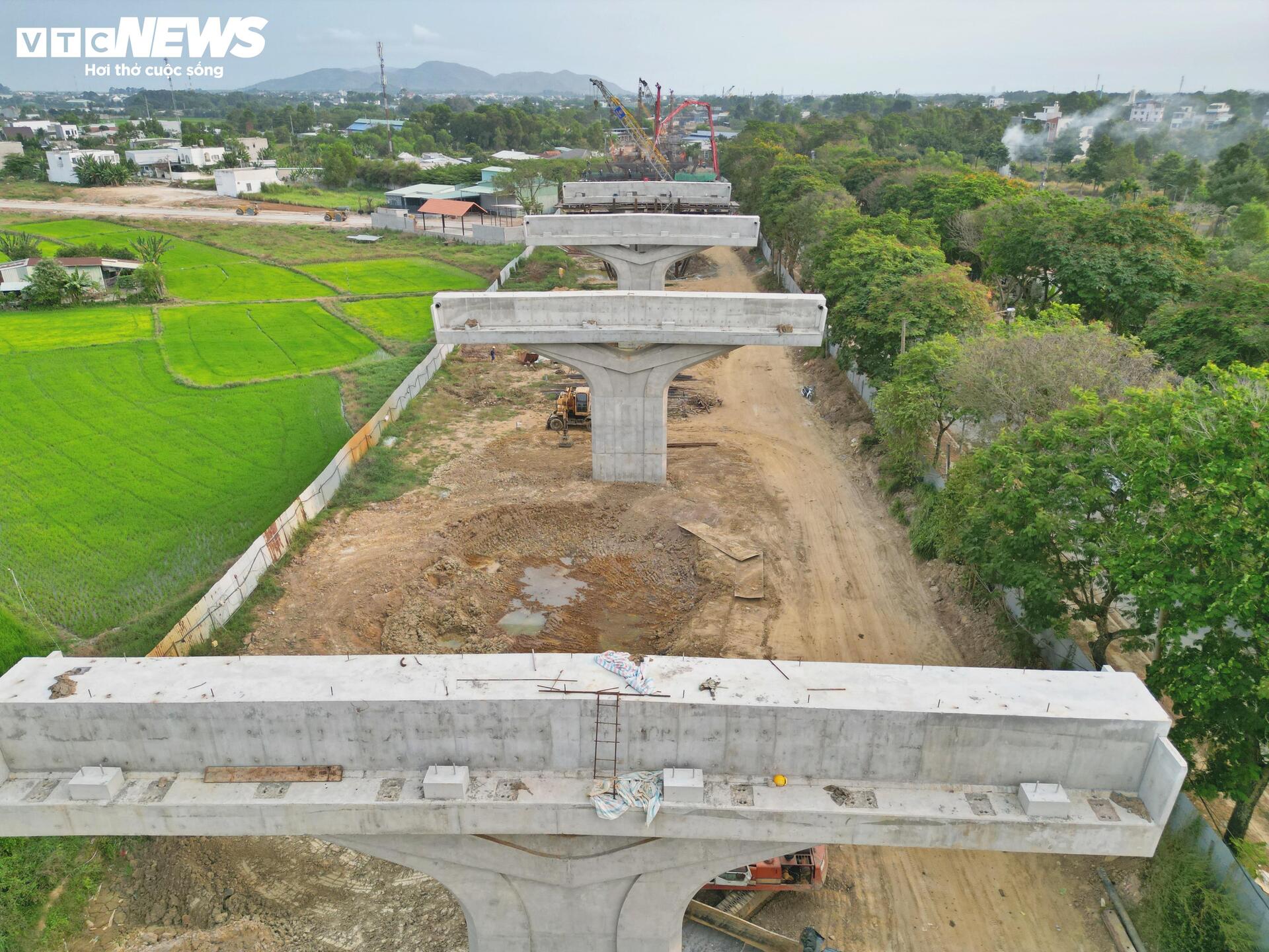 Ghi nhận tại hiện trường, nhiều hạng mục trụ, dầm cầu tại đoạn đầu đã hoàn thành, liên kết tạo thành khung tuyến đường trên cao. Khu vực giao với đường Võ Văn Kiệt, phường Tam Long, đang được thi công đồng loạt.
