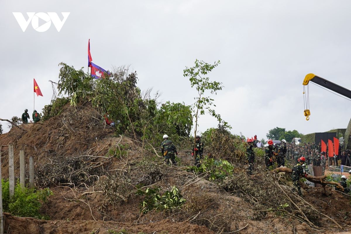 Đối với nội dung tìm kiếm, cứu nạn giúp đỡ người gặp nạn do sạt lở đất, nhận được báo cáo có sạt lở đất, lực lượng quân đội ba nước tiến hành thu thập thông tin, thống kê công dân ở khu vực xảy ra thiên tai; tìm kiếm, cứu nạn và giúp đỡ người gặp nạn do sạt lở đất; hỗ trợ y tế đối với người bị thương và giải quyết chính sách đối với người tử vong; đưa người gặp nạn bị thương nặng đến bệnh viện hậu phương bằng máy bay trực thăng.