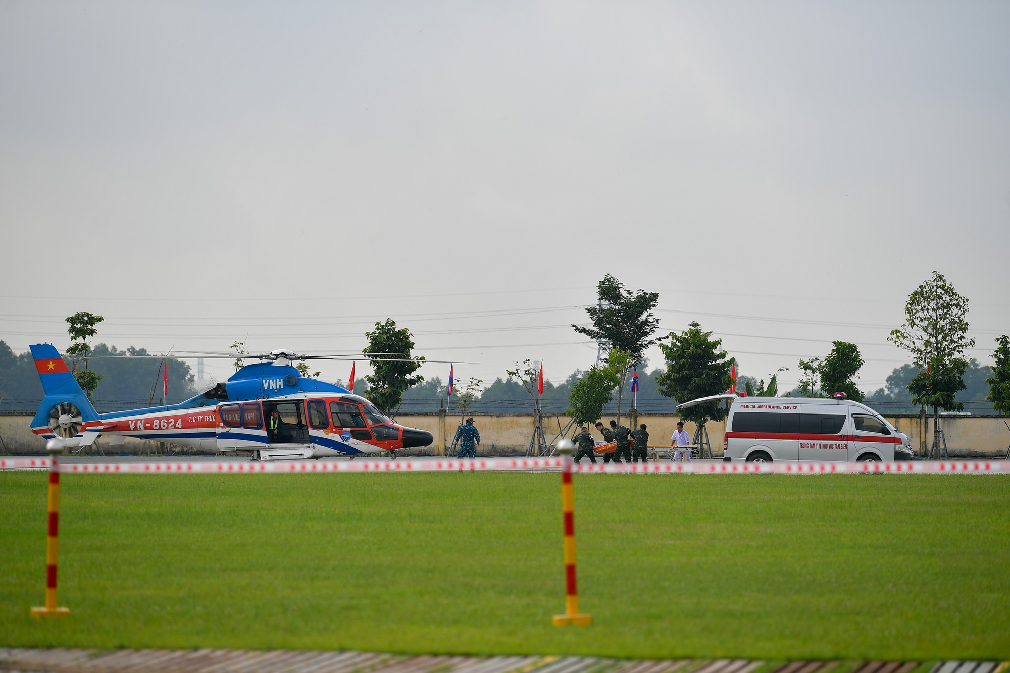 Tình huống giả định, trạm đã tiếp nhận 205 người bị nạn; trong đó mức độ nặng 45 người, vừa 74 người và nhẹ 86 người, 32 người mức độ nặng đã được vận chuyển về tuyến sau bằng đường bộ và 5 người bằng đường không.