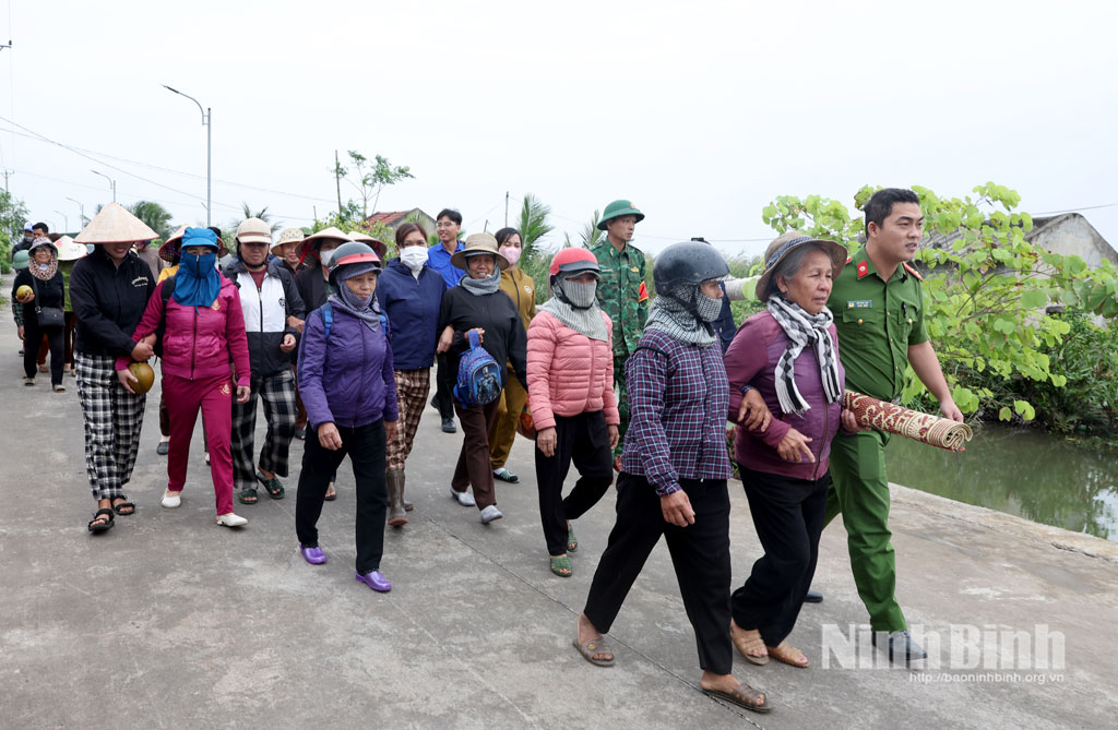 Nội dung diễn tập thực binh: sơ tán nhân dân tại xóm 1 - nơi có bão, kèm mưa lớn, nước biển dâng. Trước tình huống khẩn cấp, ngay sau khi Bí thư Đảng ủy xã chỉ đạo công tác PCTT và phát thông tin cảnh báo sớm, Trưởng xóm 1 báo cáo về số người dân cần đi sơ tán đến nơi an toàn, hướng dẫn phòng, chống bão. Cùng với cảnh báo sớm, sơ tán sớm, ưu tiên các đối tượng là người cao tuổi khó khăn đi lại, ưu tiên cho người khuyết tật, trẻ em, phụ nữ…; Cưỡng chế người dân không đi sơ tán theo yêu cầu của chính quyền; Tổ chức di chuyển người dân về điểm tập kết; Điểm danh các hộ, phổ biến nội dung nội quy tại điểm tránh trú; Các hộ dân đi vào phòng tránh trú theo danh sách và ổn định chỗ nghỉ; Sơ cấp cứu cho người dân bị nạn tại khu tránh trú…