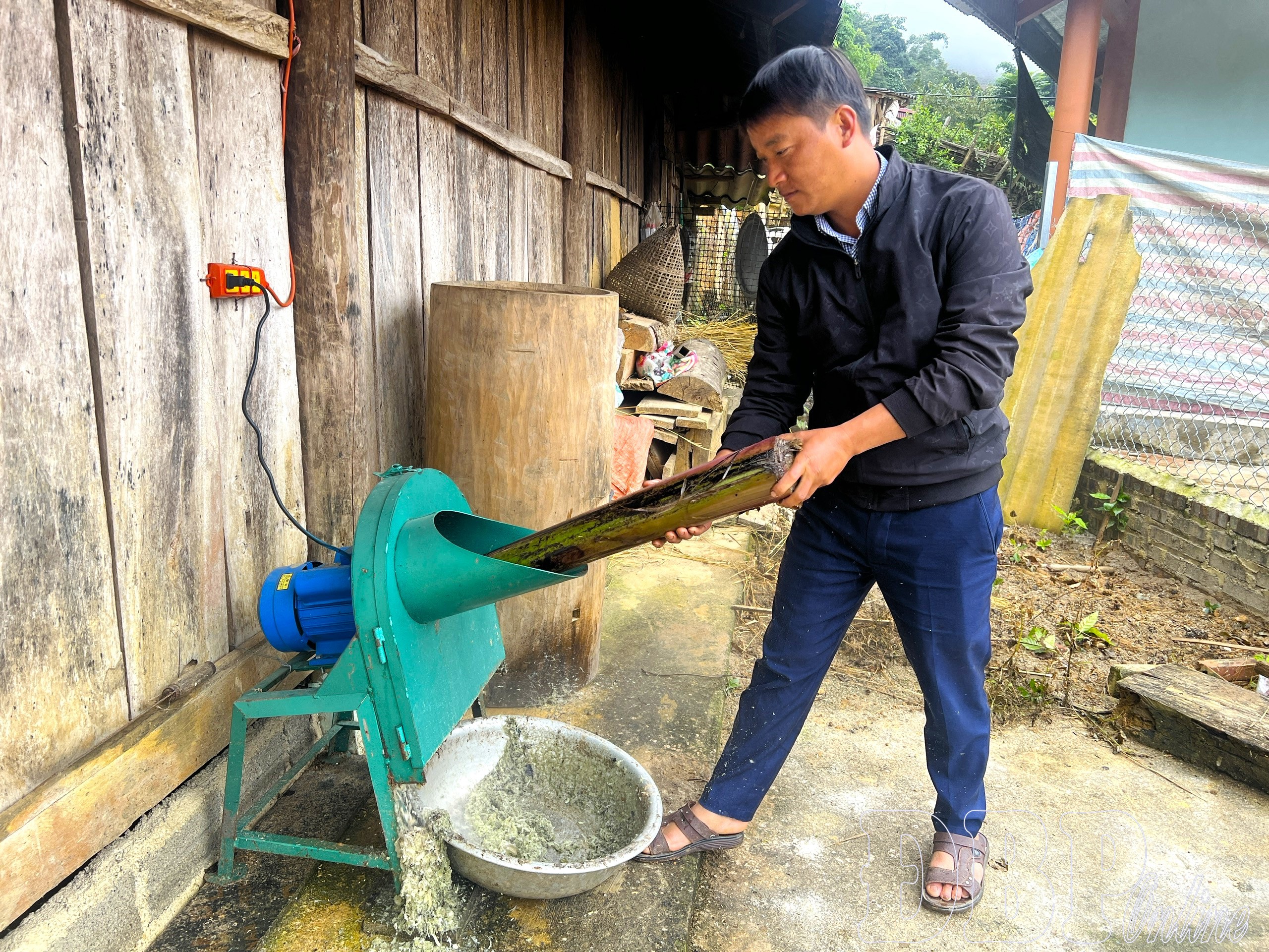 Ở bản có gia đình anh Vàng A Thu đầu tư chăn nuôi lợn với quy mô hơn 10 con mỗi lứa. Trước đây, việc chế biến thức ăn cho đàn lợn như thái chuối, rau hay xay ngô anh Thu đều phải là làm thủ công bằng tay, mất công sức và thời gian. Từ khi có điện anh Thu đã đầu tư máy thái chuối bằng điện tiện lợi hơn rất nhiều.