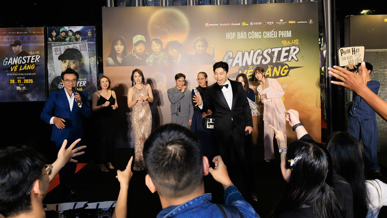 Ji Seung Hyun (ngoài cùng bên trái) tại buổi công chiếu ra mắt phim tại Việt Nam.