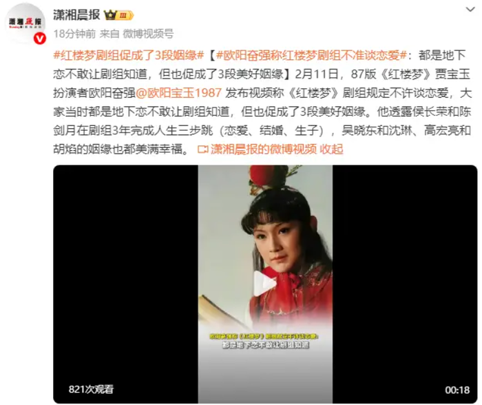 Gần 40 năm kể từ ngày phiên bản truyền hình kinh điển Hồng Lâu Mộng (1987) lên sóng, những câu chuyện hậu trường của tác phẩm vẫn luôn khiến công chúng tò mò. Mới đây, Âu Dương Phấn Cường, người thủ vai Giả Bảo Ngọc trong bản phim huyền thoại, đã chia sẻ trong một video rằng đoàn phim khi đó có quy định không cho phép diễn viên yêu đương. Tuy nhiên, trong bối cảnh nghiêm khắc ấy, nhiều mối tình vẫn nảy nở âm thầm và cuối cùng kết thành những cuộc hôn nhân viên mãn, trở thành một phần ký ức đẹp của lịch sử truyền hình Trung Quốc.