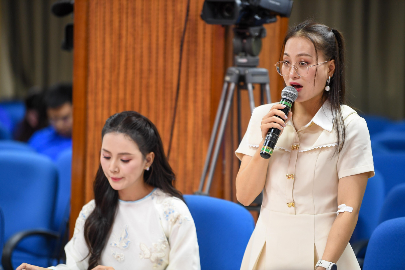 Nghệ sĩ ưu tú Lô Thị Ngọc Thúy - diễn viên Liên đoàn Xiếc Việt Nam, Gương mặt trẻ Việt Nam triển vọng năm 2023 góp ý tại hội nghị.