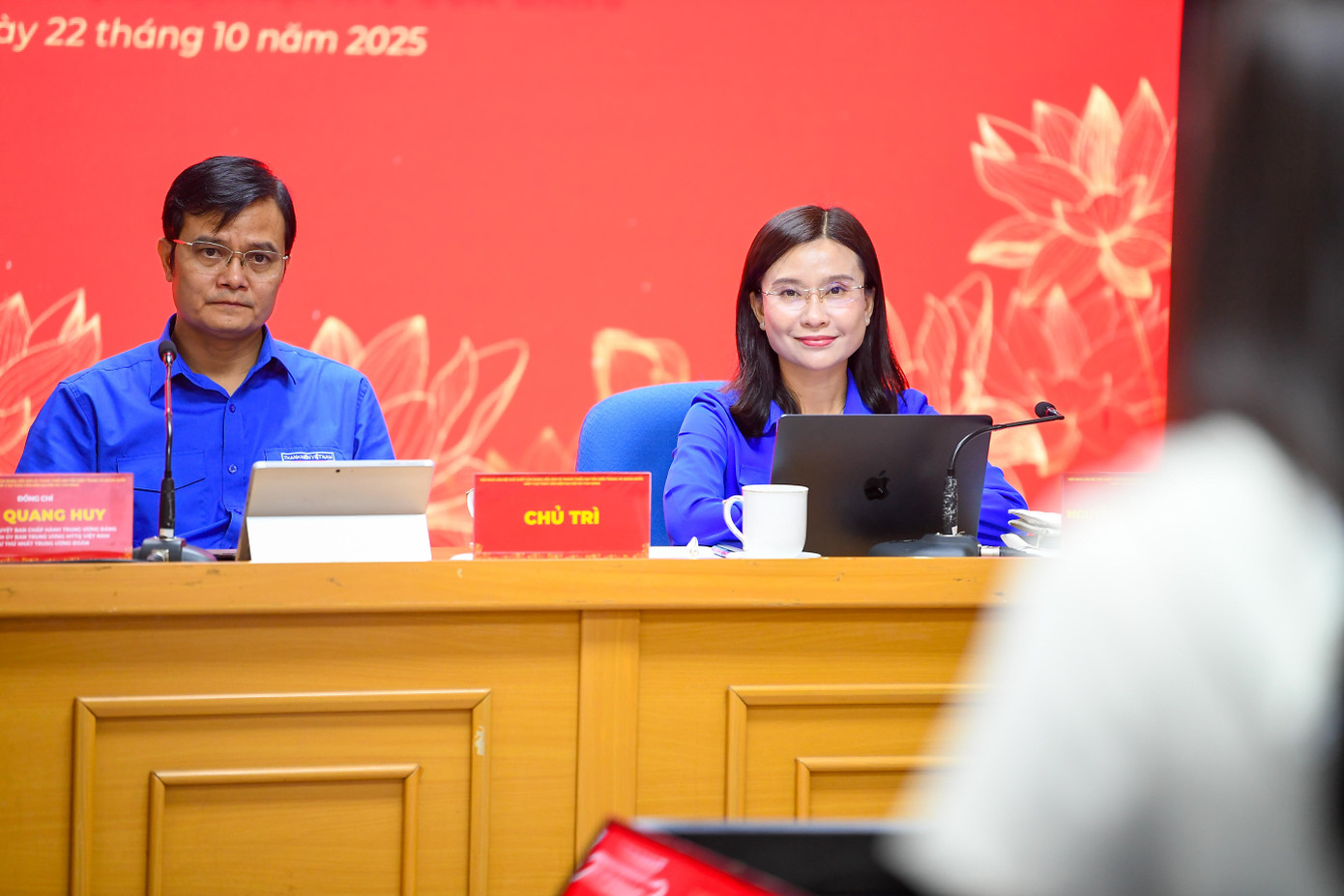 Chủ trì hội nghị tại điểm cầu trung tâm có anh Bùi Quang Huy - Ủy viên dự khuyết T.Ư Đảng, Phó Chủ tịch Ủy ban T.Ư MTTQ Việt Nam, Bí thư thứ nhất T.Ư Đoàn; chị Nguyễn Phạm Duy Trang - Bí thư T.Ư Đoàn, Chủ tịch Hội đồng Đội T.Ư.