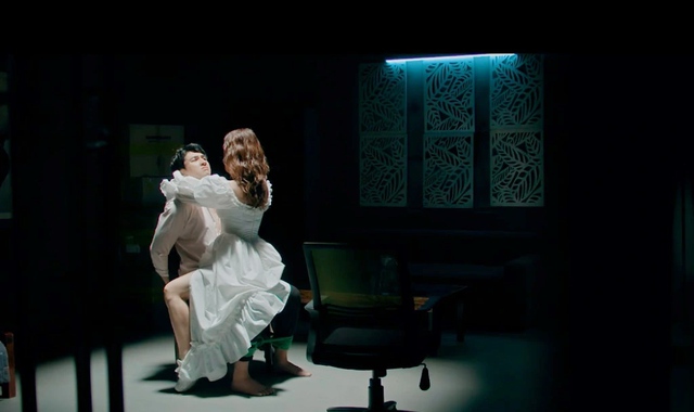 Lan Phương có cảnh nóng với Bình An trong Đồng hồ đếm ngược. Ảnh: VFC.