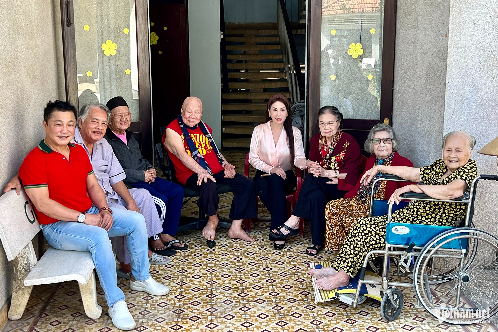 Nghệ sĩ Ngọc Đáng, 98 tuổi là người cao tuổi nhất ở viện dưỡng lão. Dù đi lại khó khăn, bà vẫn minh mẫn, trò chuyện rôm rả cùng mọi người.