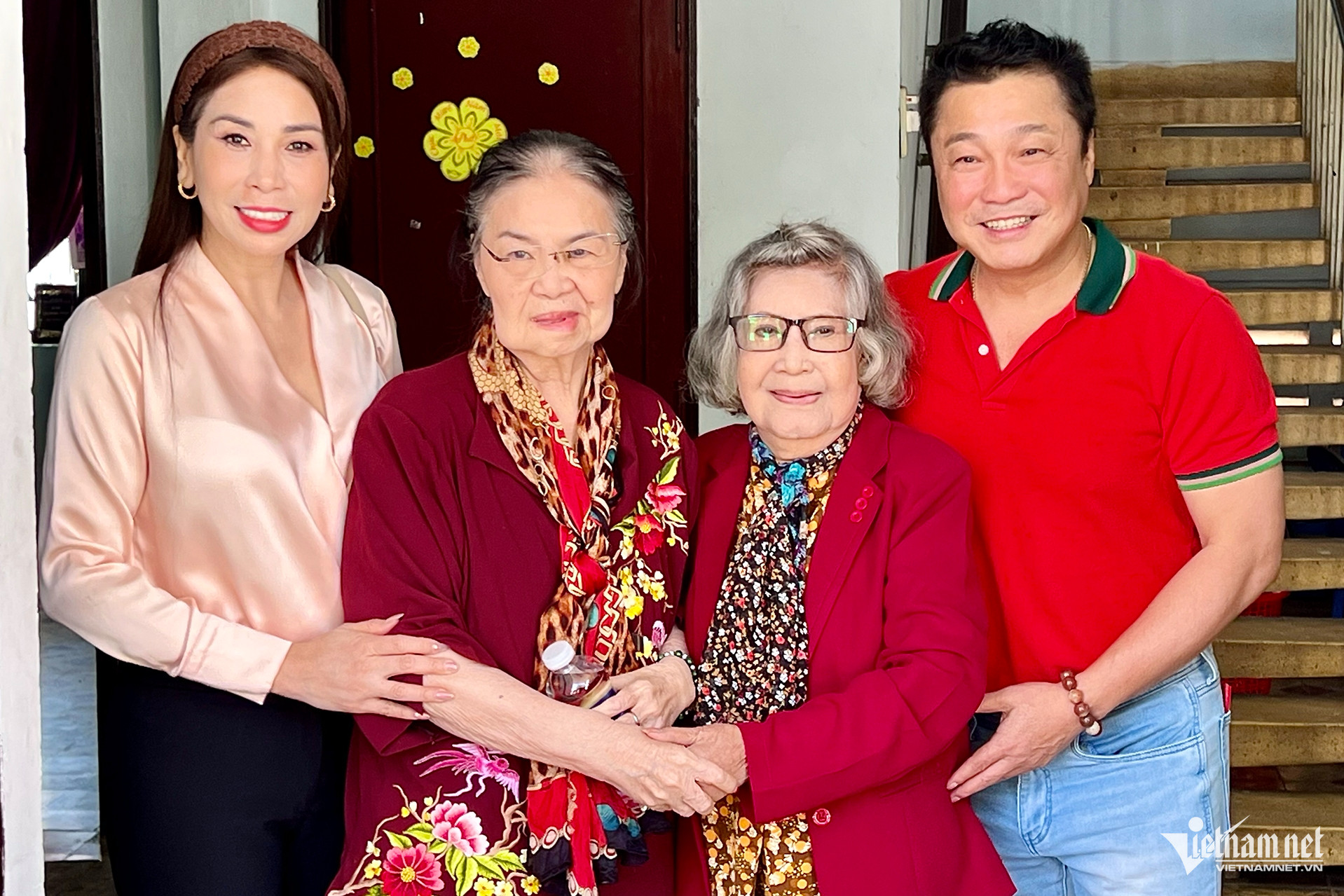 Tài tử Lý Hùng cùng em gái - diễn viên Lý Hương đưa mẹ đến chúc Tết các nghệ sĩ gạo cội.